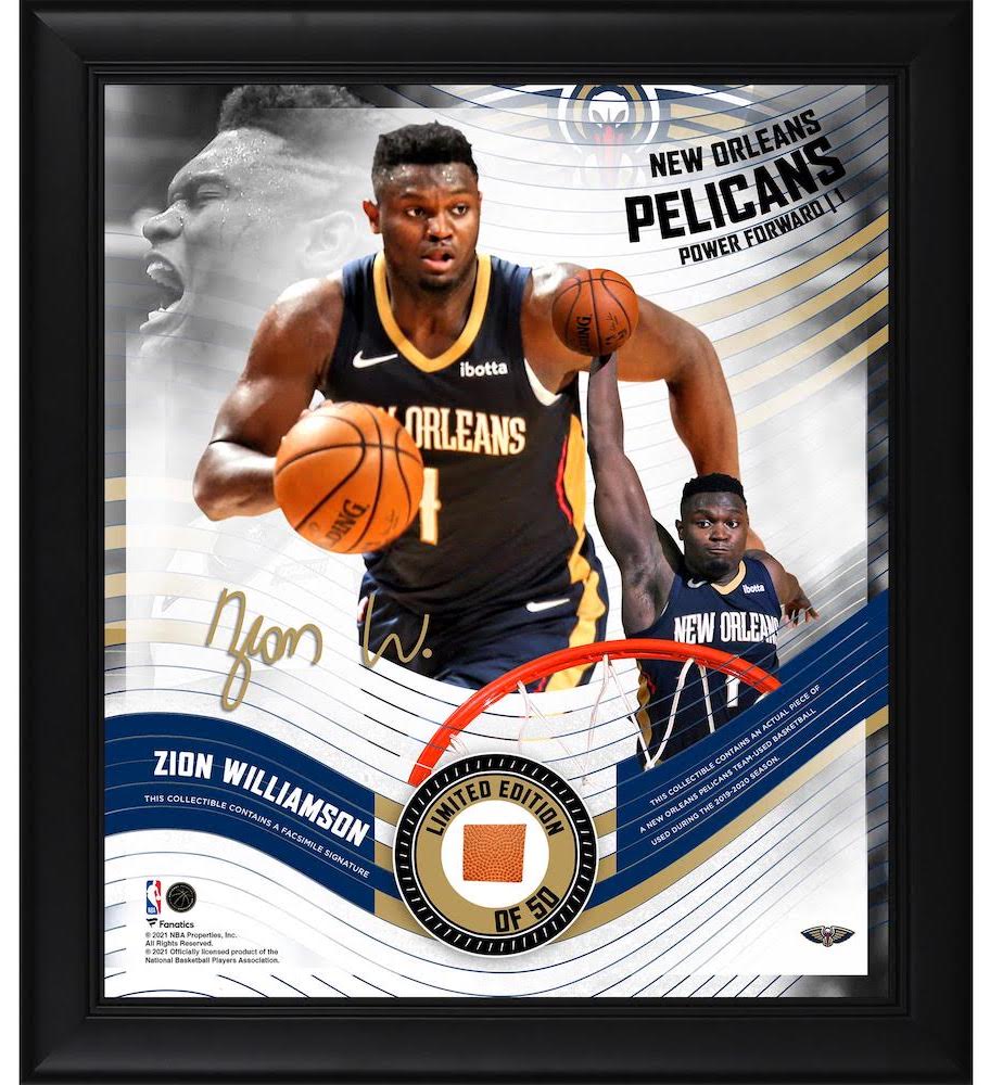 Zion Williamson LE Pelicans 15x17 Custom Framed Game-Used Basketball Piece Collage (Fanatics)