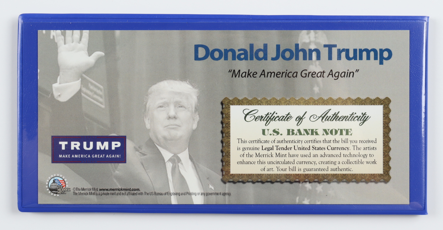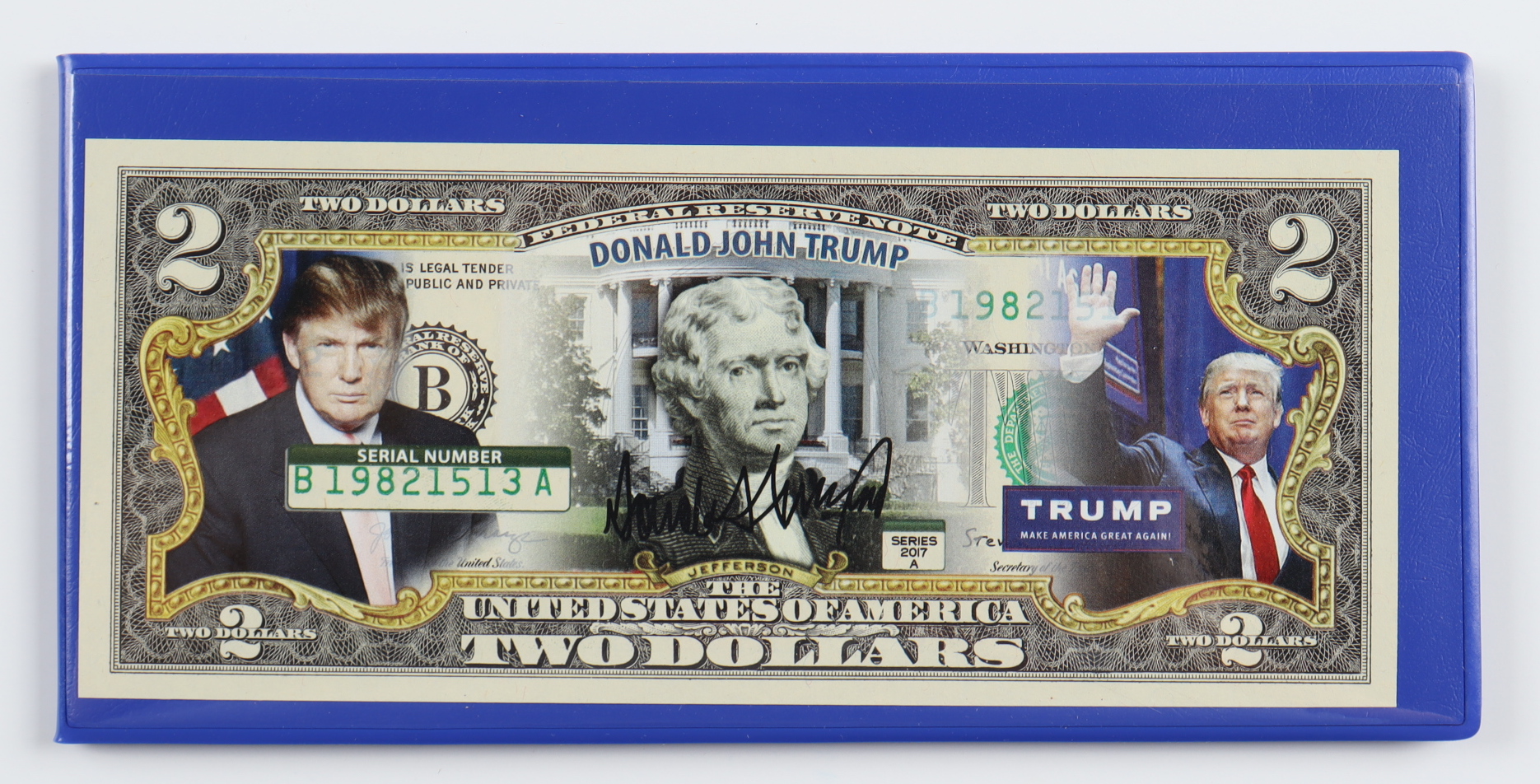 Donald Trump Genuine Legal Tender U.S. $2 Two Dollar Bill Commemorative Bank Note with Display Folder