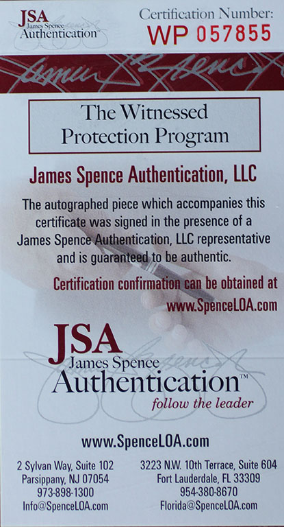 The lot / autograph(s) includes an official James Spence Authentication (JSA) hologram and matching COA for authenticity purposes. The signing of this item was witnessed by JSA.