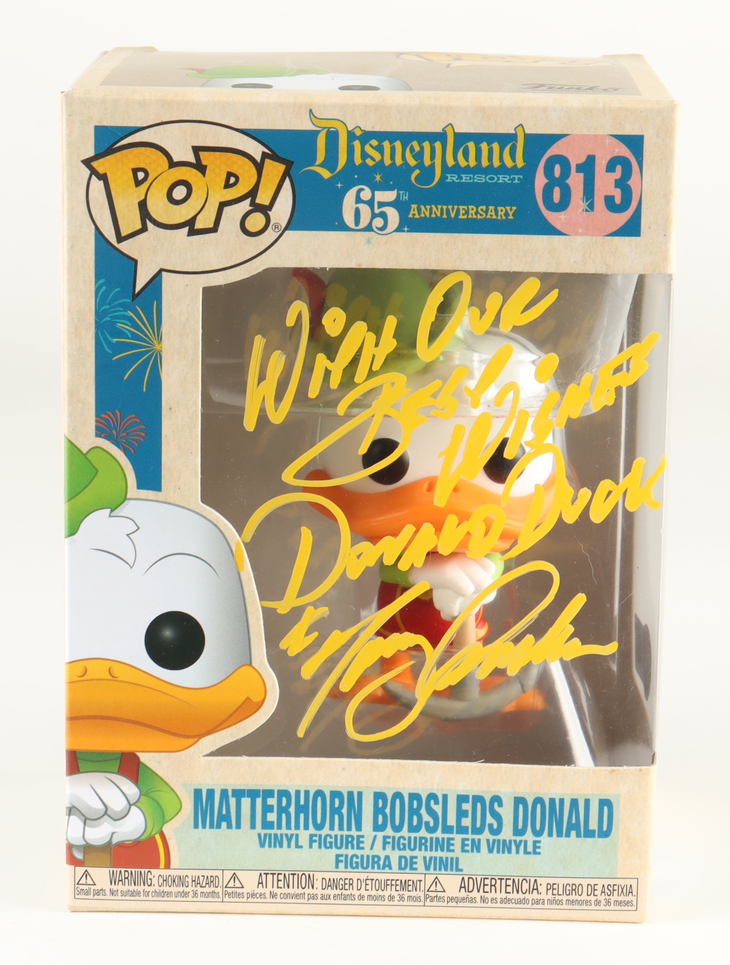 Tony Anselmo Signed "Disneyland Resort" #813 Matterhorn Bobsleds Donald Funko Pop! Vinyl Figure Inscribed "With Our Best Wishes Donald Duck" (Beckett)