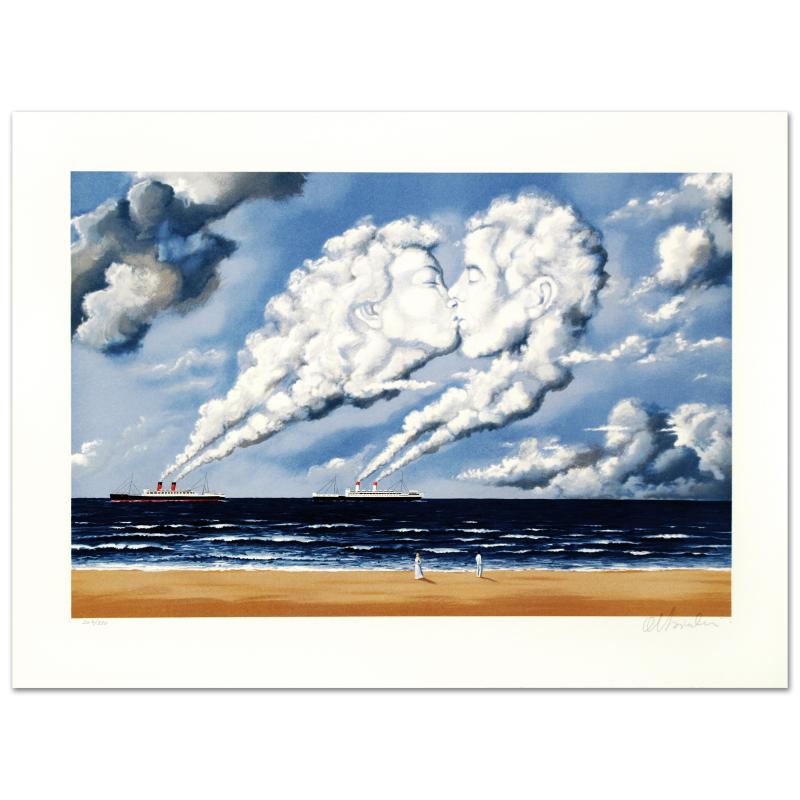 "Charismatic Impulse" is a limited edition hand pulled original lithograph on museum quality deckle-edge paper, numbered and hand signed in pencil by Rafal Olbinski. Measures approximately 27" x 20" (with border), 23" x 15.5" (image). This lithograph was created on a rare antique Marinoni Voirin French press that dates back to the 1800's. It provides highly pigmented inks that will resist fading and preserve the integrity of the print for more than a lifetime. This process is the most elaborate, costly and effective way to reproduce art while maintaining the brilliance and accuracy of the original creation.