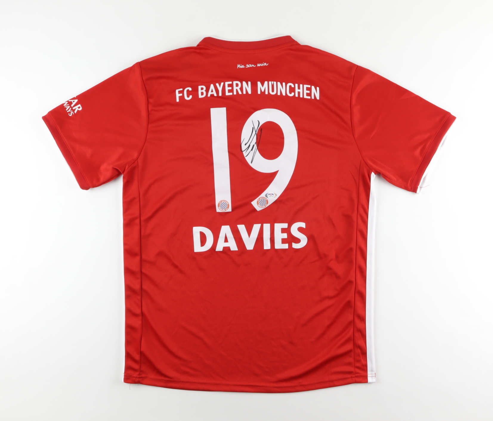 Custom on-field style jersey. Everything is sewn on, size XL. Hand-signed by Alphonso Davies.