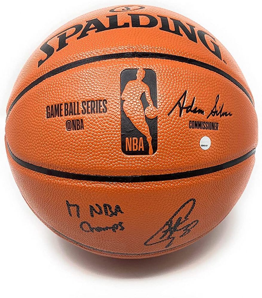 Official Spalding NBA Game Ball basketball. Hand-signed and inscribed by Stephen Curry (Golden State Warriors).