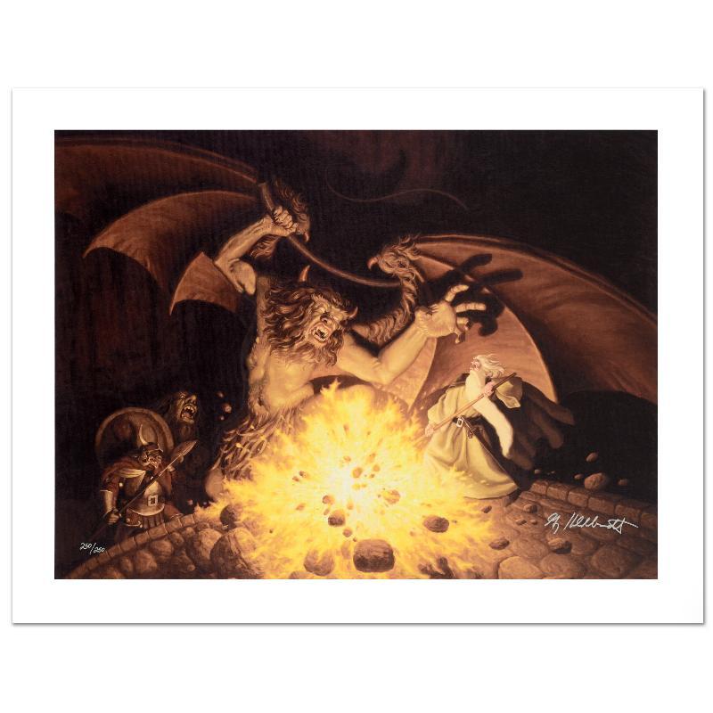 Known world wide for their fantasy and science fiction illustrations, identical twin brothers Greg and Tim Hildebrandt created an abundance of fascinating artwork, most notably their illustration work for J.R.R. Tolkien's 'The Hobbit' and 'Lord of the Rings'. "Balrog", originally created in the 1970's for Ballantine Books, is a limited edition giclee on canvas, numbered and hand signed by Greg Hildebrandt! Measures approx. 28" x 21" (image).