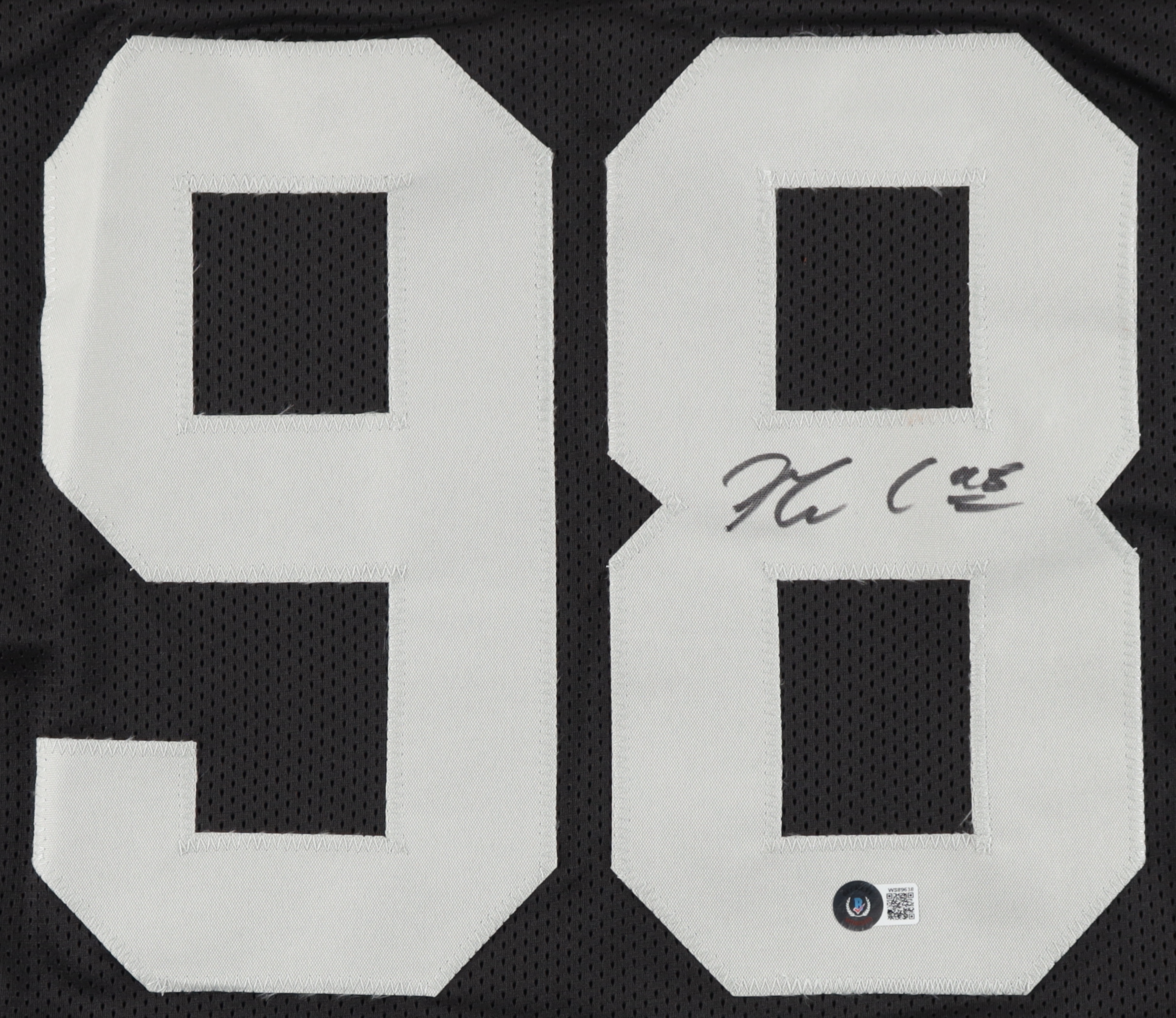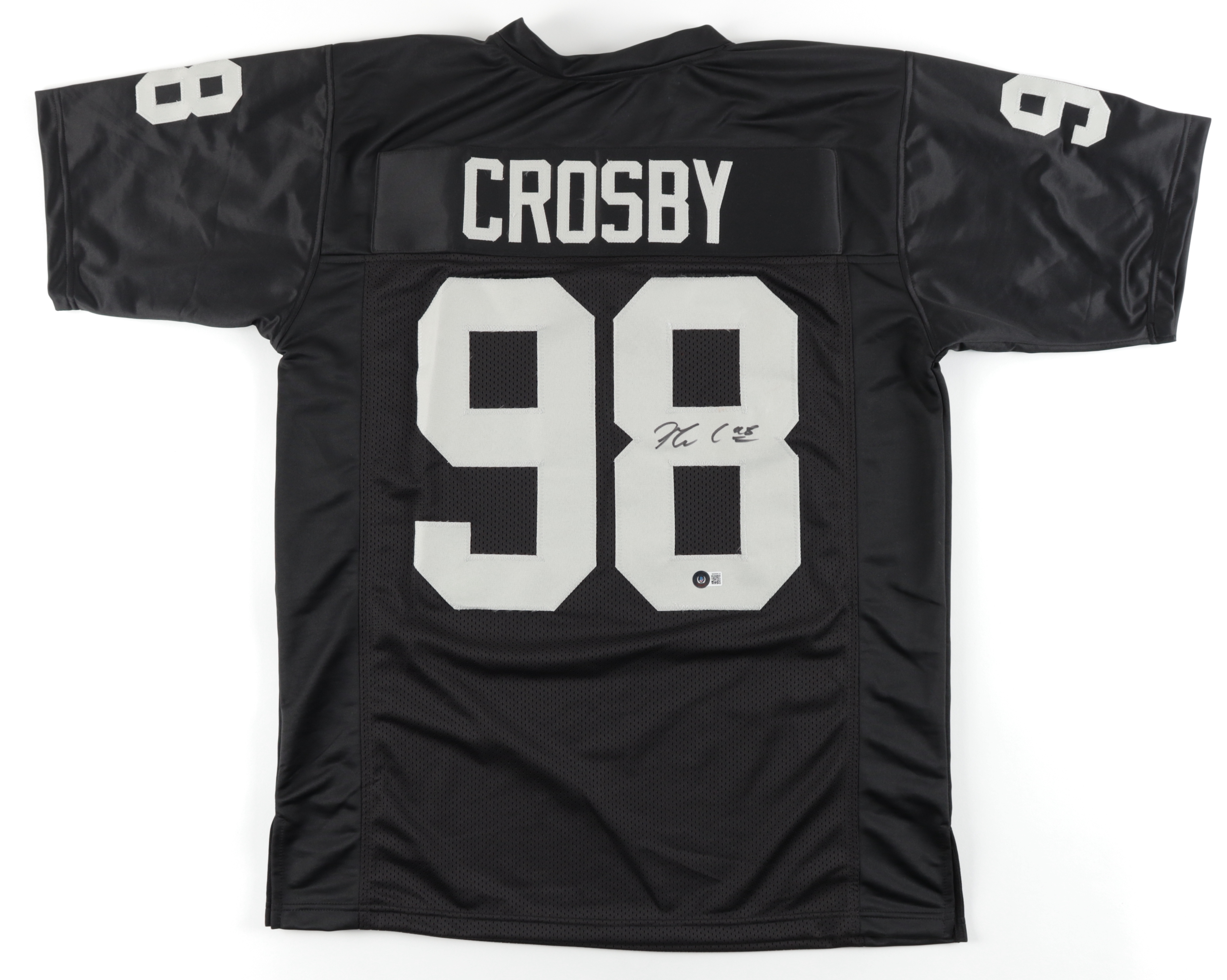 Custom on-field style jersey. Everything sewn on, size XL. Hand-signed by Maxx Crosby.