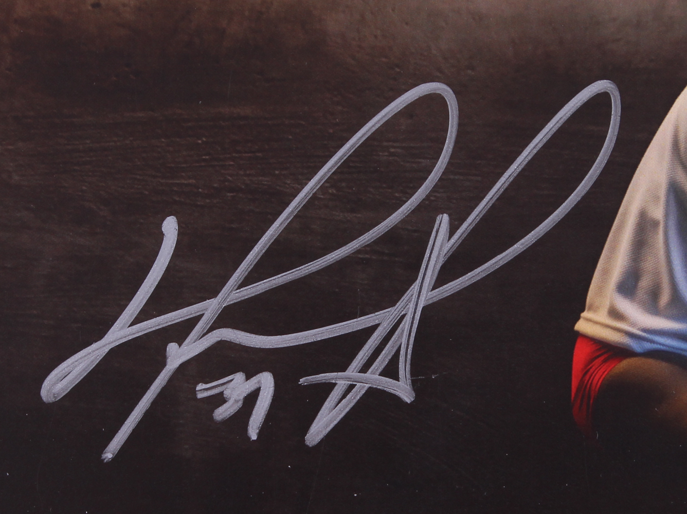 Custom matted photo display measures 11" x 14" and features an 5" x 10" photo that has been hand-signed in silver paint pen by David Ortiz (Red Sox).