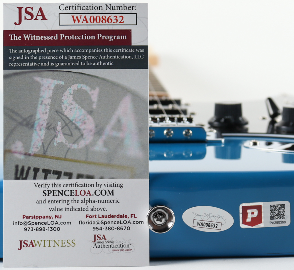 The guitar includes an official James Spence Authentication (JSA) hologram and matching COA as well as an official Pristine Authentic tamper-proof hologram and matching COA for authenticity purposes. The signing of this item was witnessed by JSA.