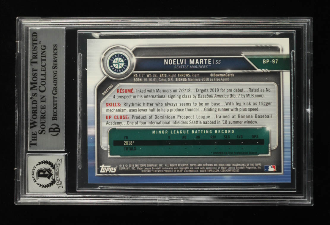 Noelvi Marte Signed 2019 Bowman Prospects #BP97 RC (BGS)