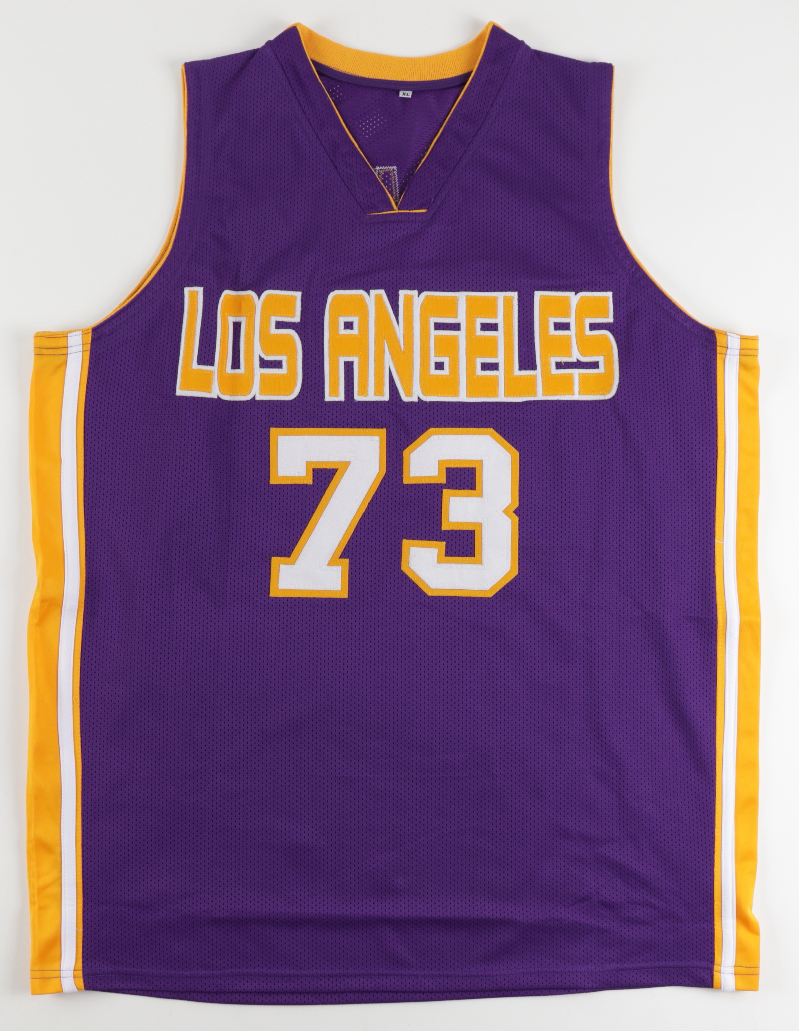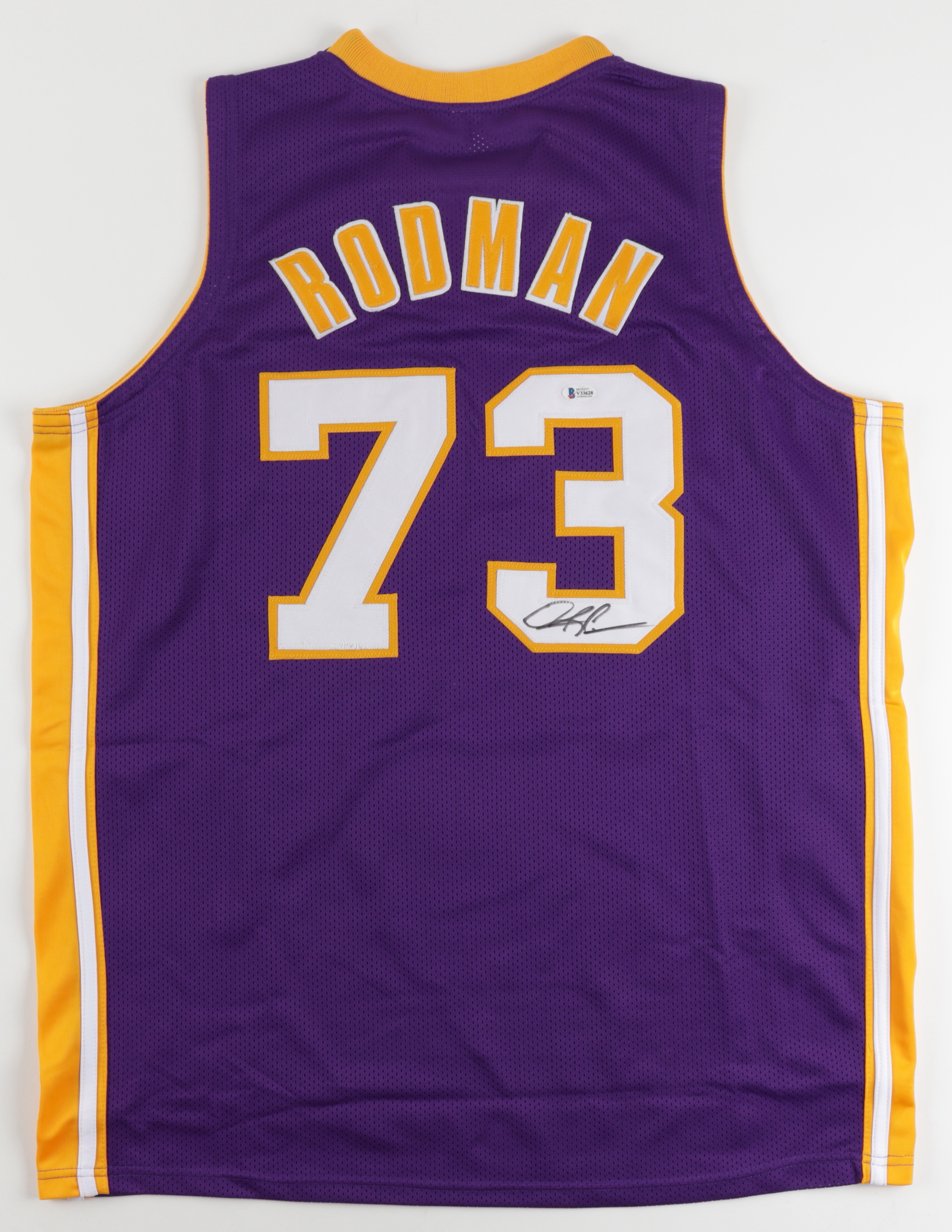 Custom on-court style jersey. Everything is sewn on, size XL. Hand-signed by Dennis Rodman (HOF).
