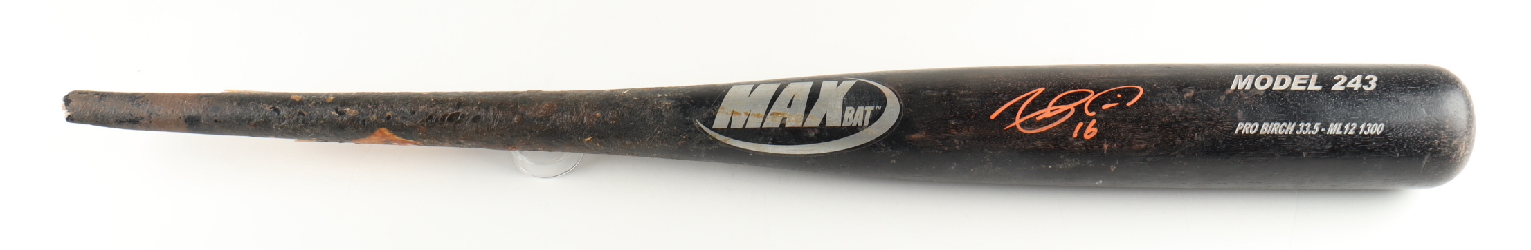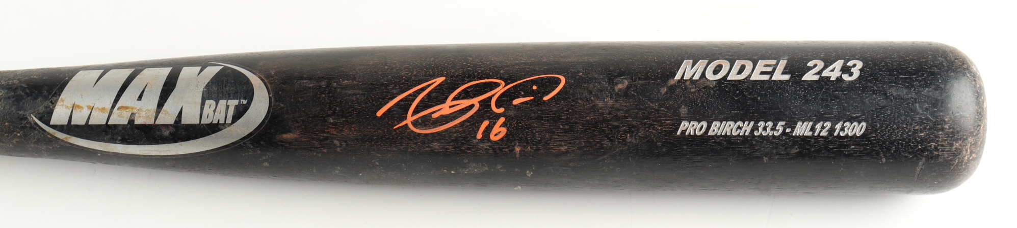 Max Model 243 baseball bat. Hand-signed by Angel Pagan (San Francisco Giants). Please note, the bat has been game-used and cracked by an unknown player.
