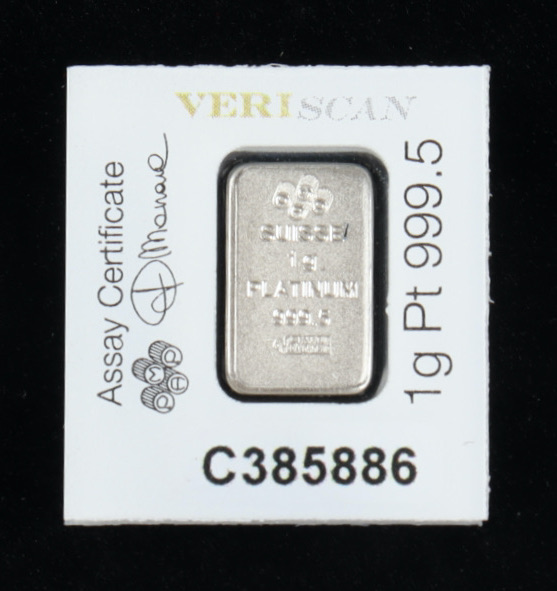 Certified PAMP 999.5 Solid Platinum 1 Gram Bar
