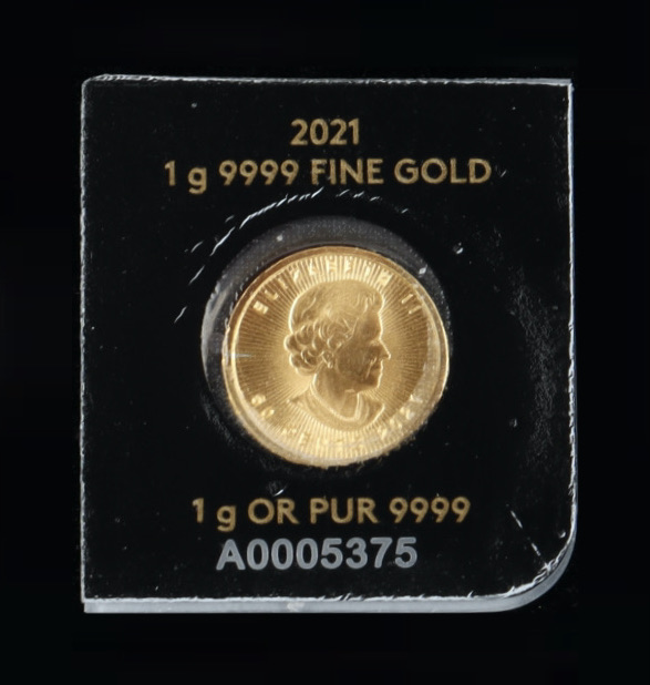 2021 1 Gram Royal Canadian Mint Gold Maplegram with Assay