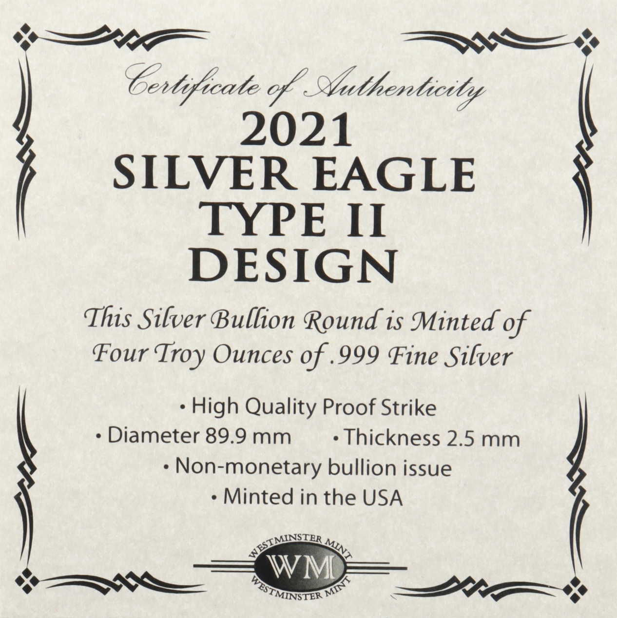 2021 Silver Eagle Type II Design 4 Oz. Bullion Round