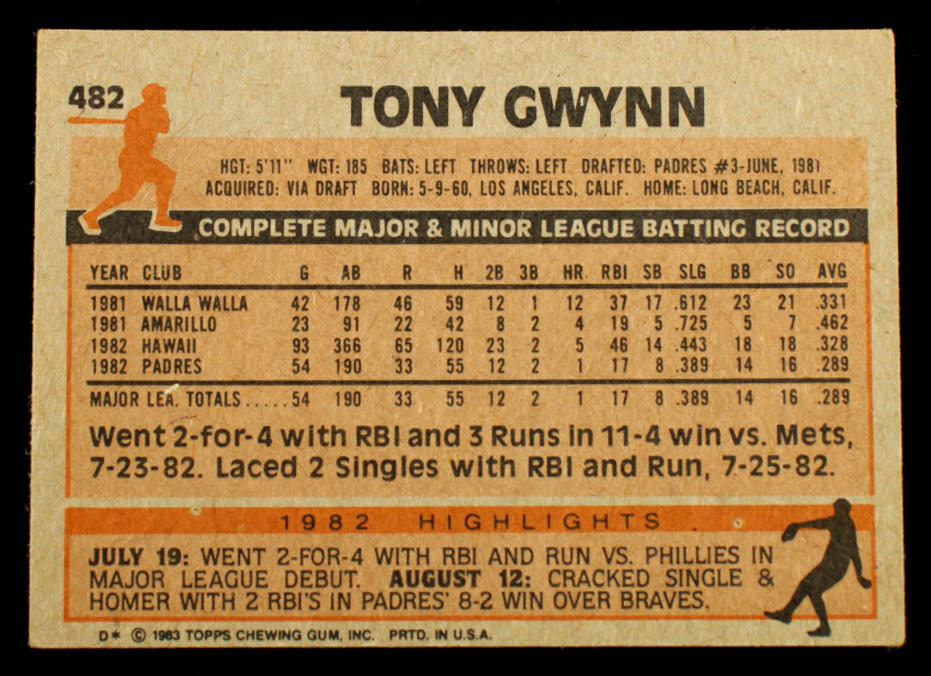 Tony Gwynn 1983 Topps #482 RC