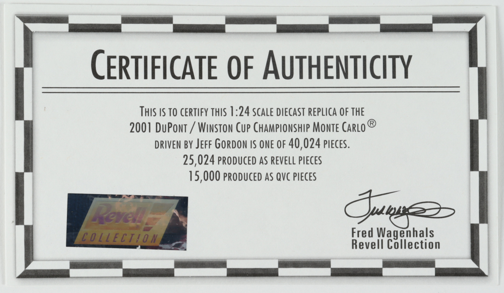 Jeff Gordon LE NASCAR #24 Dupont - Winston Cup Champion - 2001 Monte Carlo 1:24 Scale Diecast Car