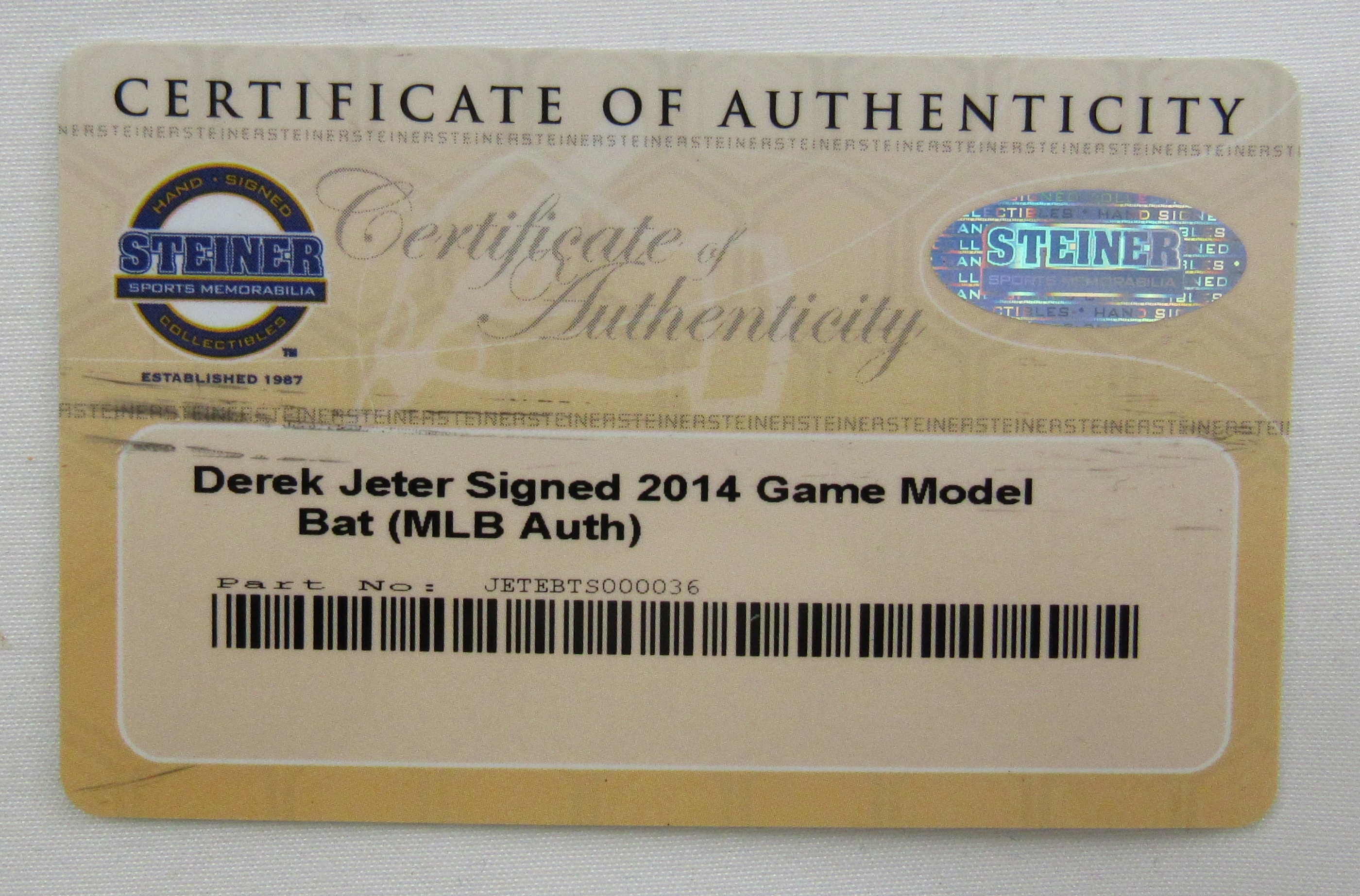 Authentication: Steiner COA & MLB Authentication Hologram