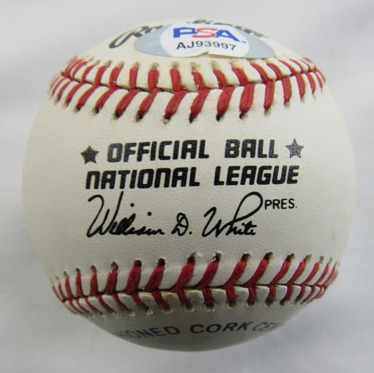 Rawlings Official National League baseball. Hand-signed by Willie Mays (San Francisco Giants, HOF). Please note, the baseball is naturally toned.