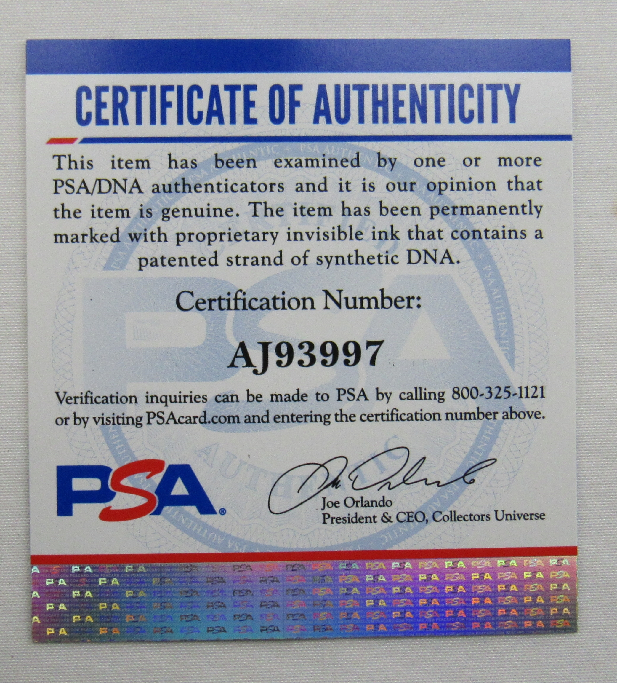 Authentication: PSA COA