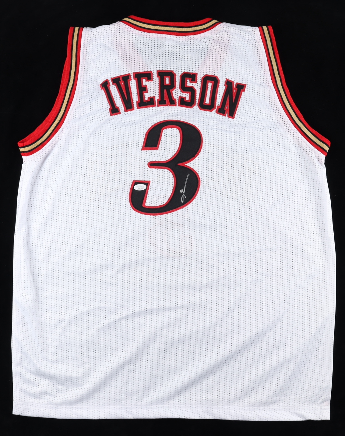 Custom on-court style jersey. Everything is sewn on, size XL. Hand-signed by Allen Iverson (HOF).