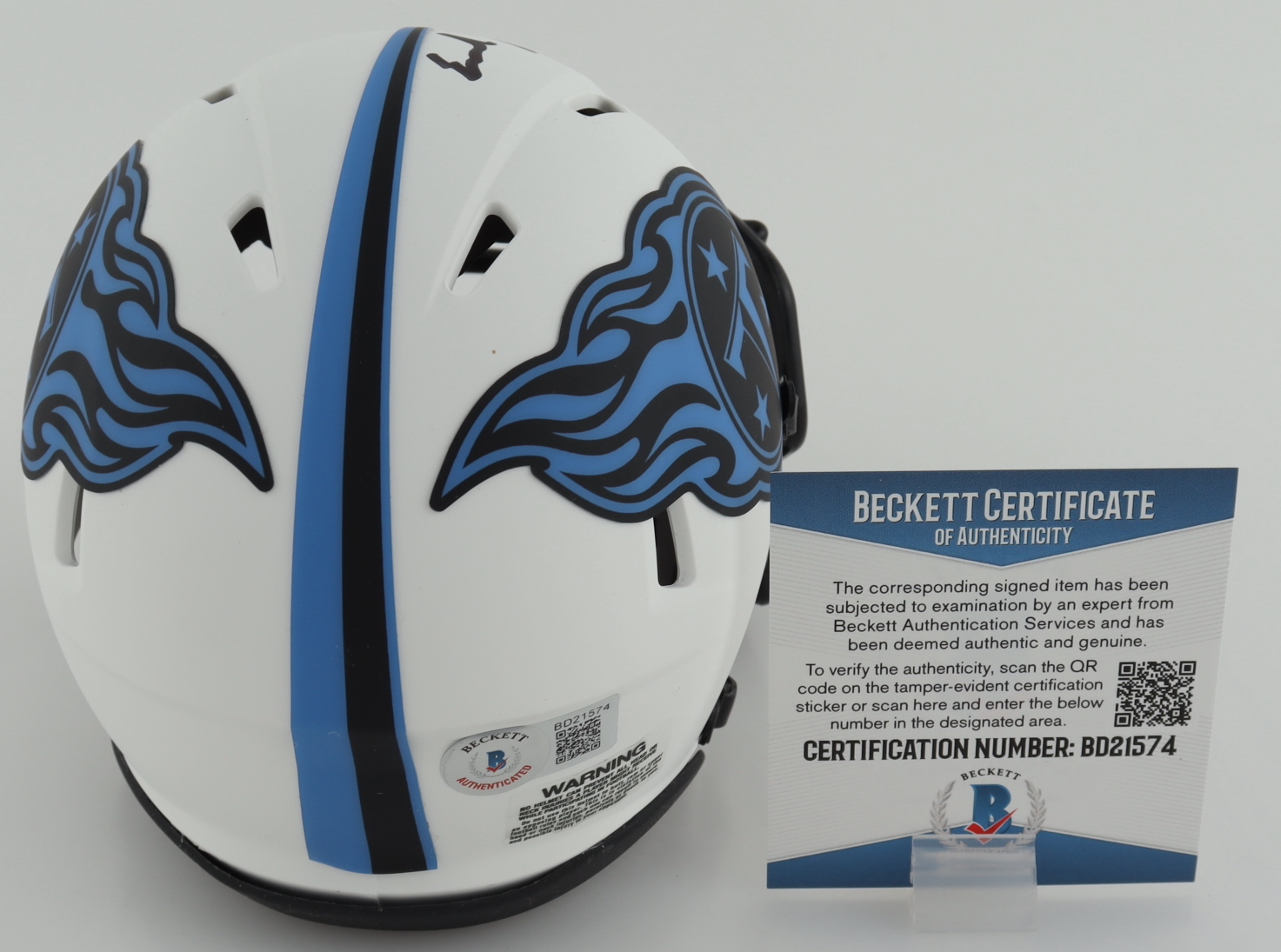 Riddell Tennessee Titans Lunar Eclipse Alternate speed mini helmet. Has been hand-signed and inscribed by Earl Campbell (HOF).