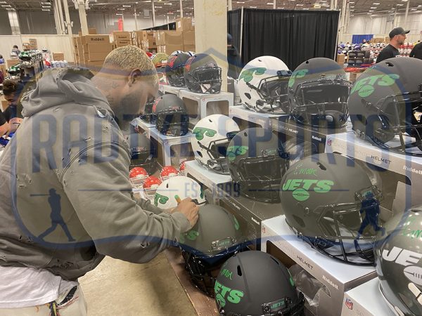Riddell New York Jets full-size authentic on-field Lunar Eclipse Alternate Speed helmet. Hand-signed by Elijah Moore.