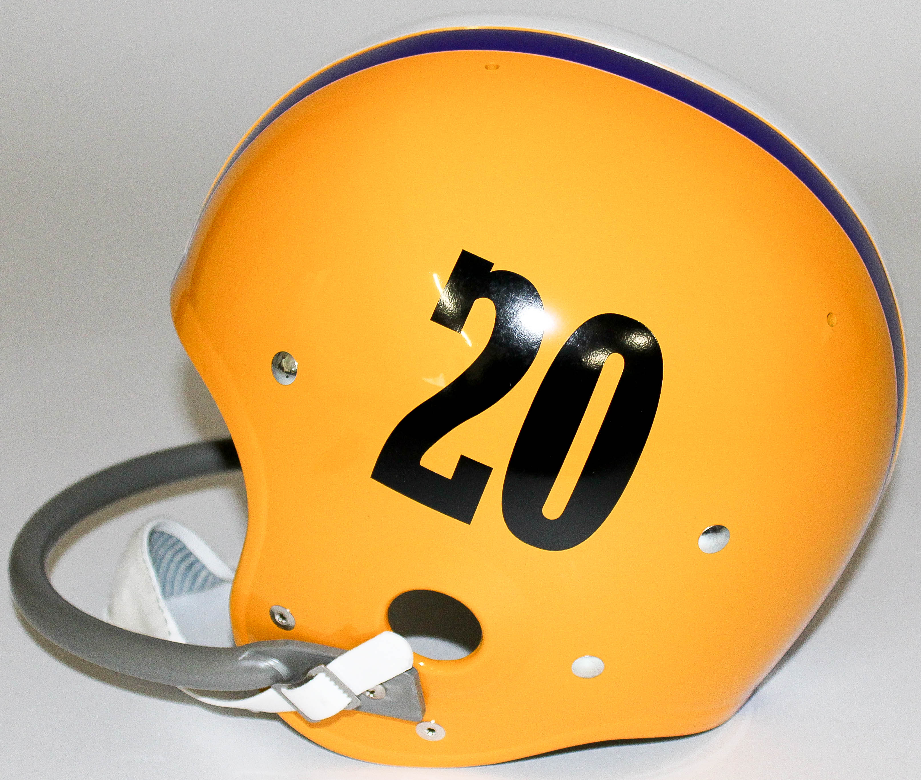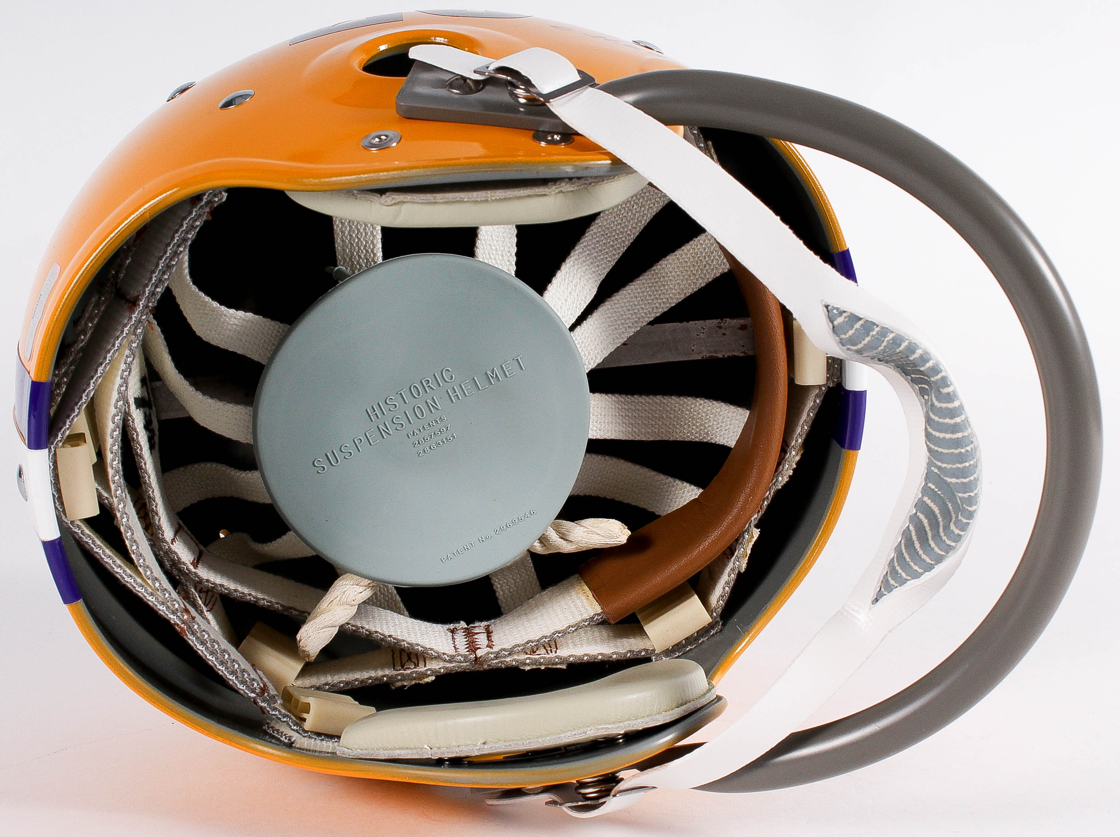 Tigers full-size suspension helmet. Hand-signed and inscribed in black felt tip pen by Billy Cannon (Raiders).