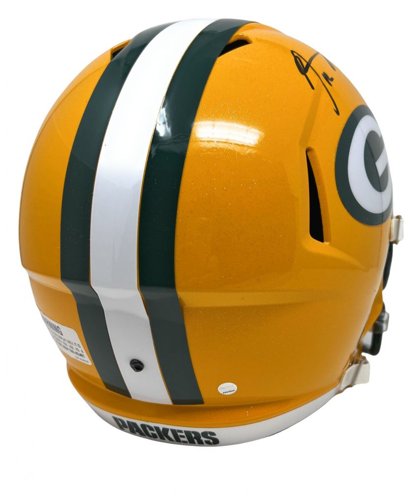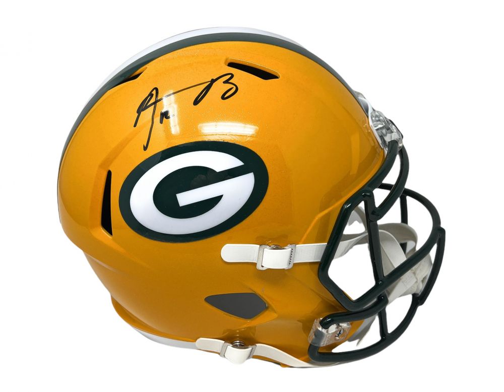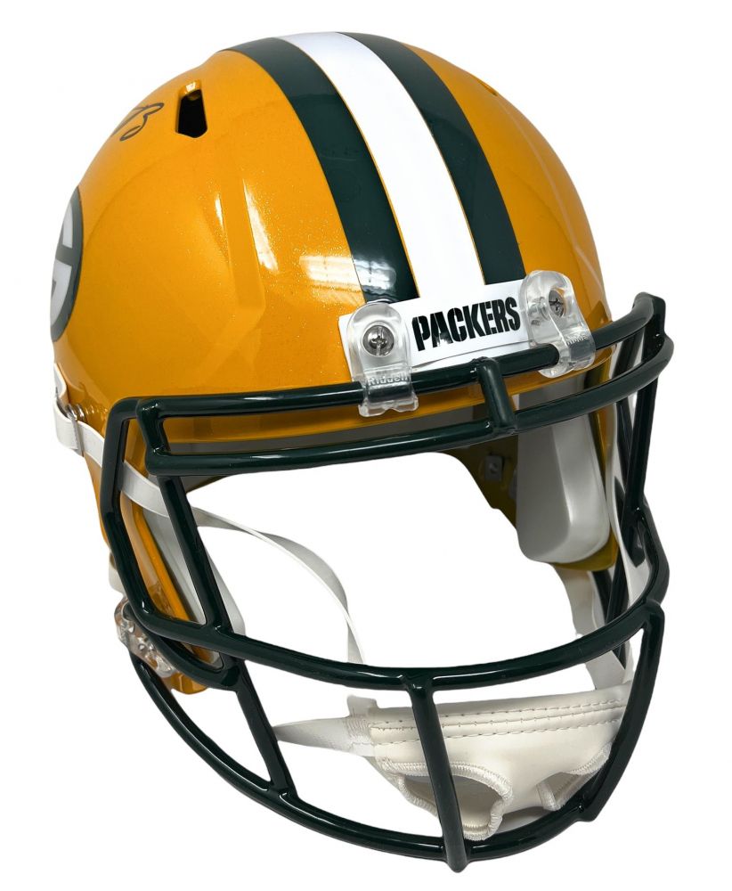 Riddell Green Bay Packers full-size replica speed helmet. Hand-signed by Aaron Rodgers.