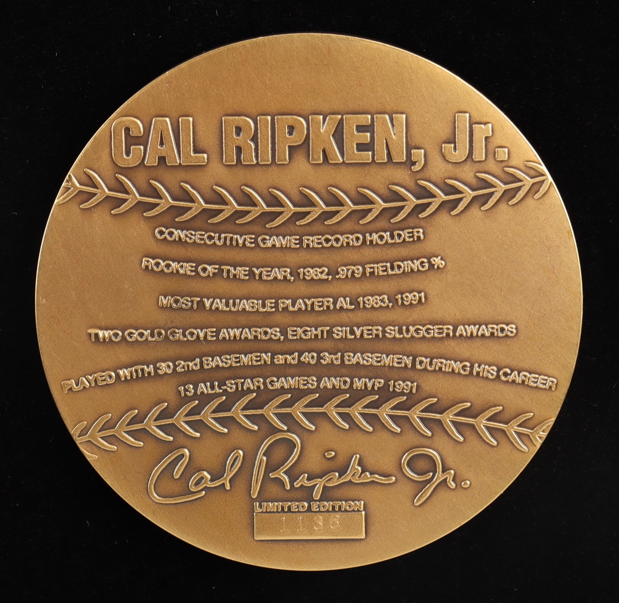 Cal Ripken Jr. LE Bronze Highland Mint Coin in Case