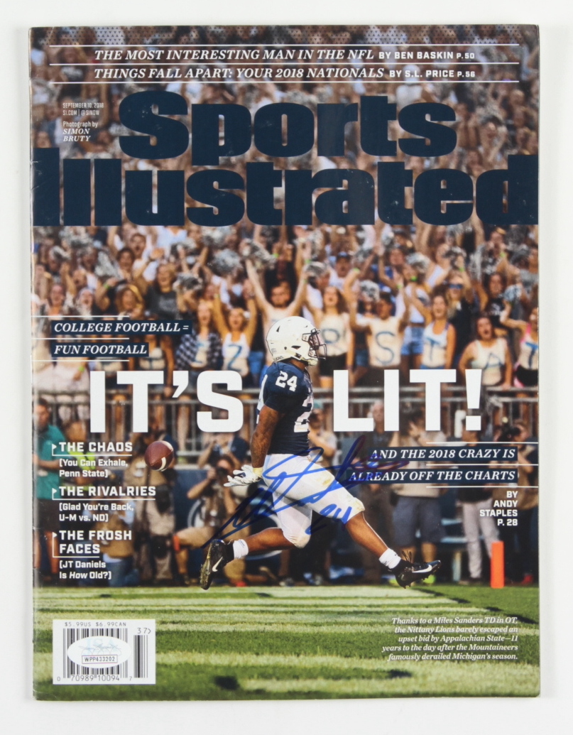 September 10, 2018 issue of "Sports Illustrated" magazine. Hand-signed on the front cover by Miles Sanders (Penn State Nittany Lions).