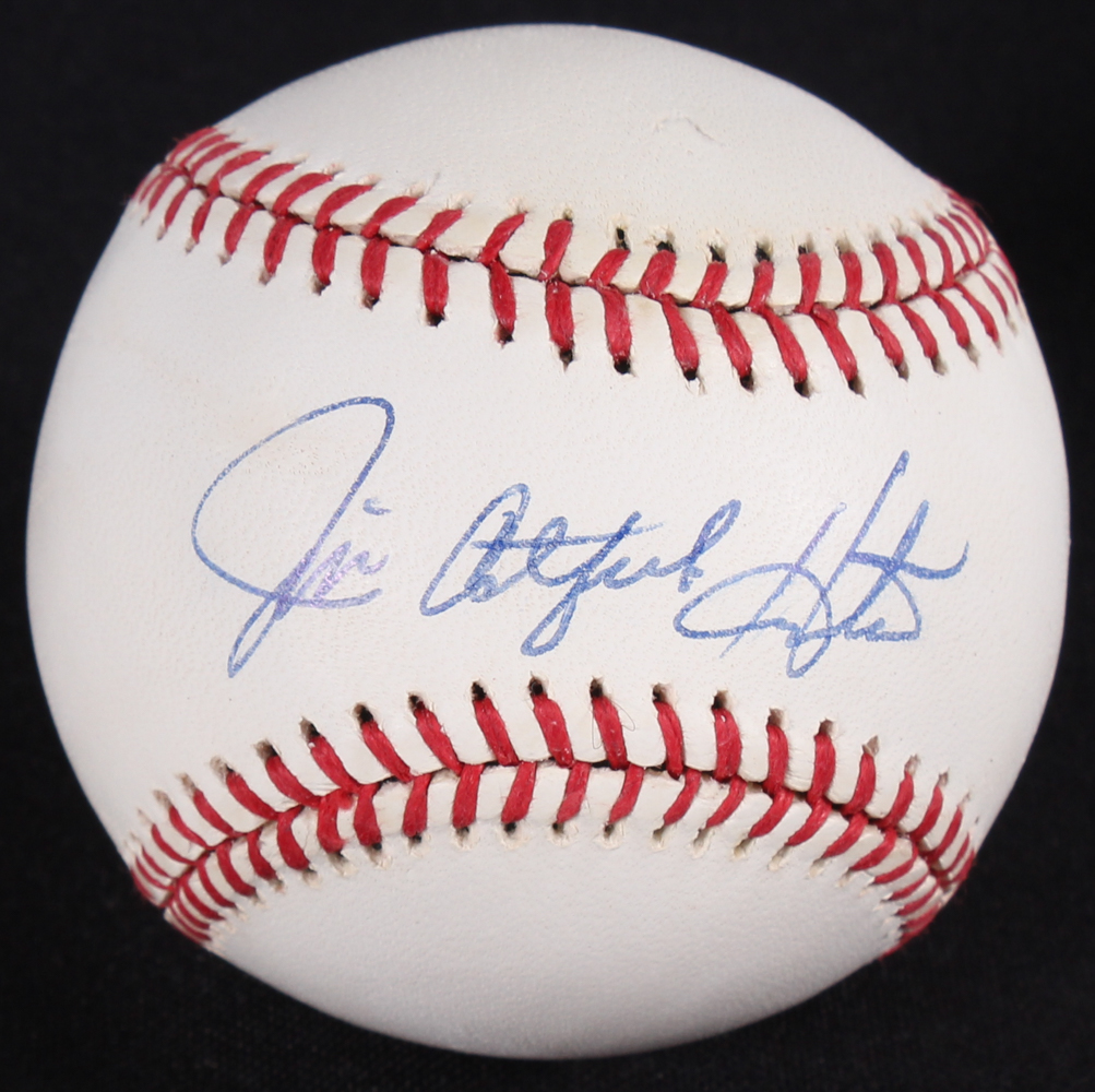 Official League baseball. Hand-signed in blue ink pen by Jim "Catfish" Hunter (D 1999, Athletics HOF).