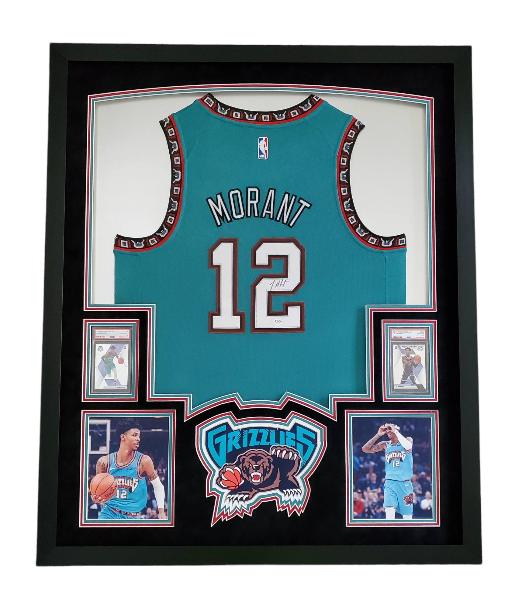 Ja Morant Signed 34x42 Custom Framed Jersey Display with (2) PSA 10 Rookie Cards (PSA)