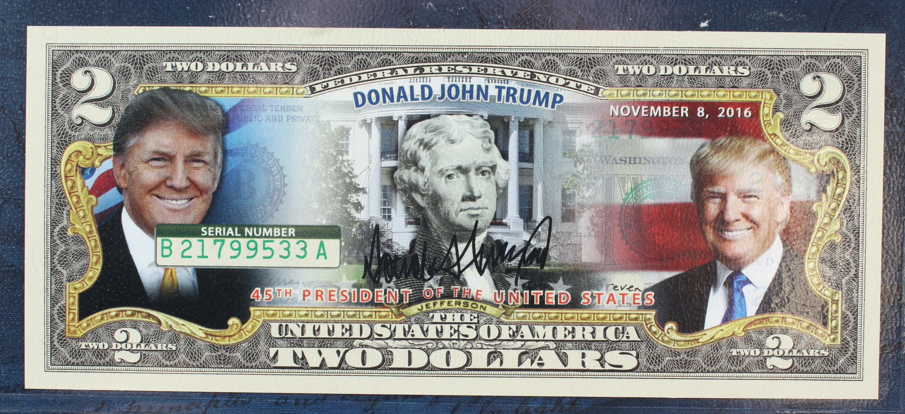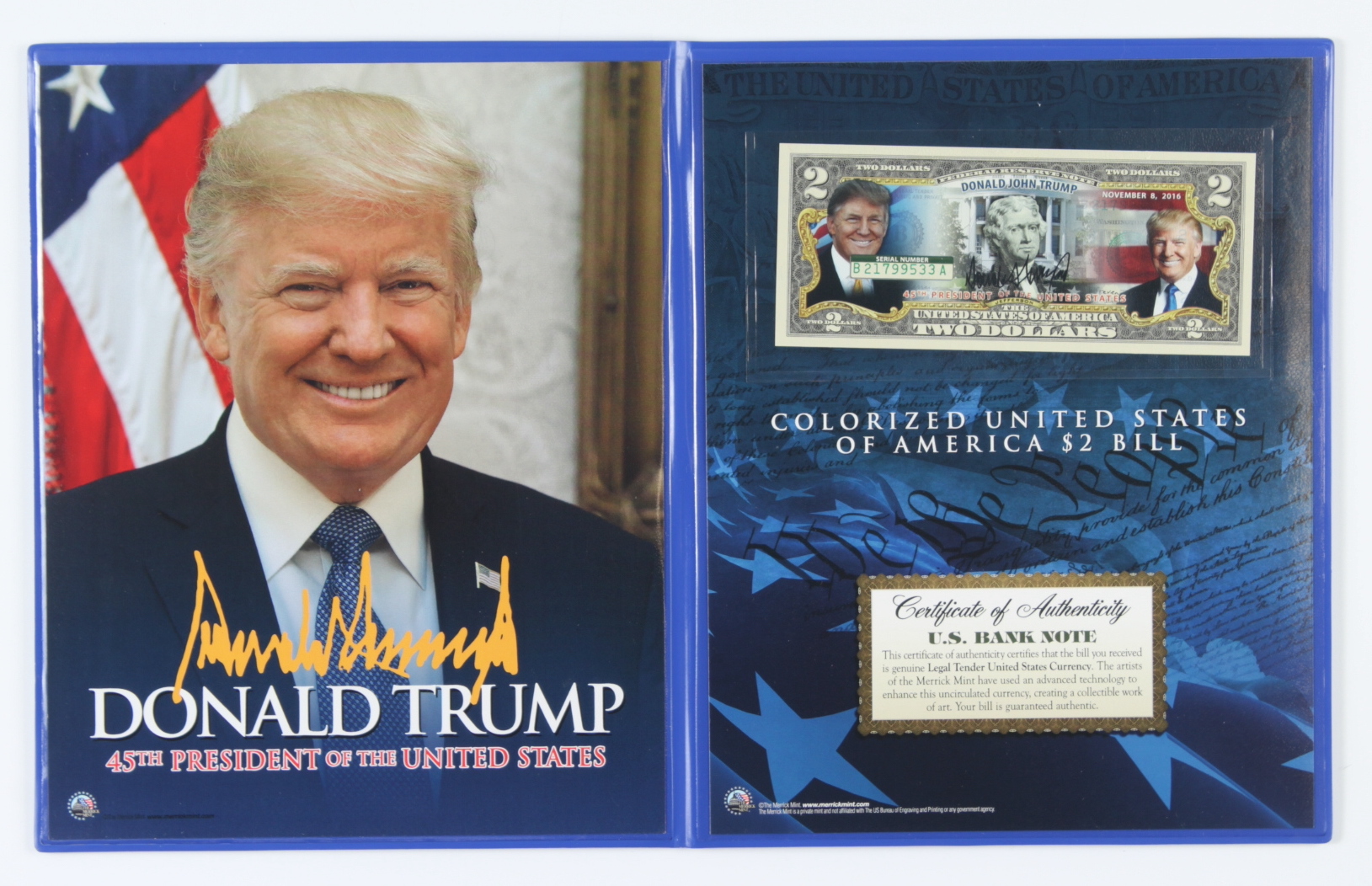 Donald Trump Genuine Legal Tender U.S. $2 Two Dollar Bill Commemorative Bank Note with Display Folder