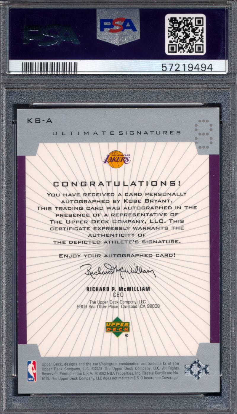 Kobe Bryant 2001-02 Ultimate Collection Signatures #KBA (PSA 8)