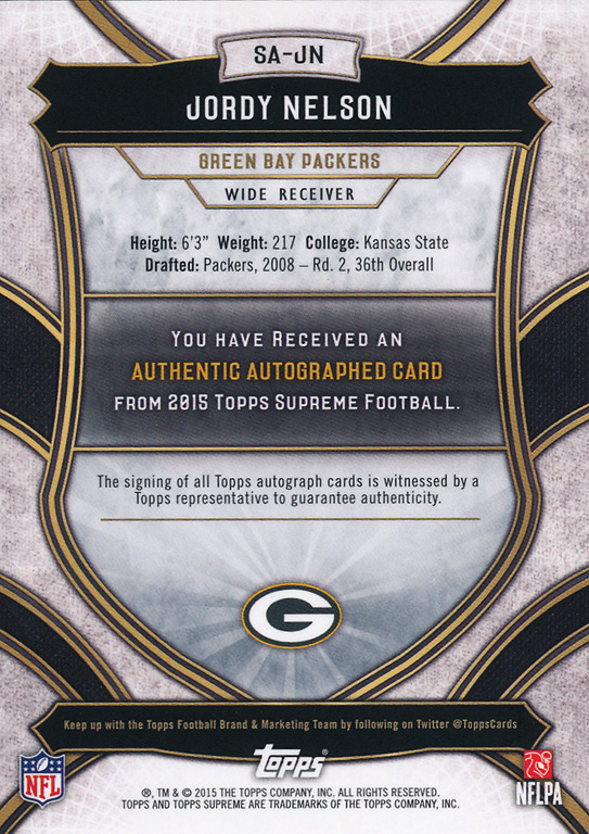 Jordy Nelson 2015 Topps Supreme Autographs Gold #SAJN