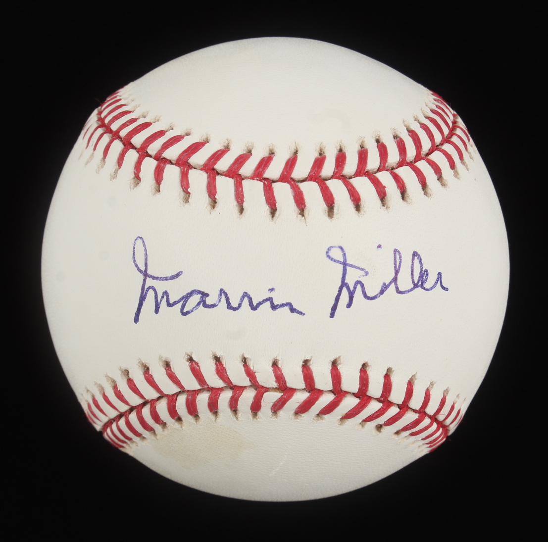 Rawlings Official Major League baseball. Hand-signed by Marvin Miller (D. 2012, HOF). Please note, the baseball is naturally toned.