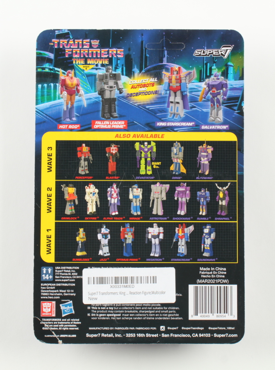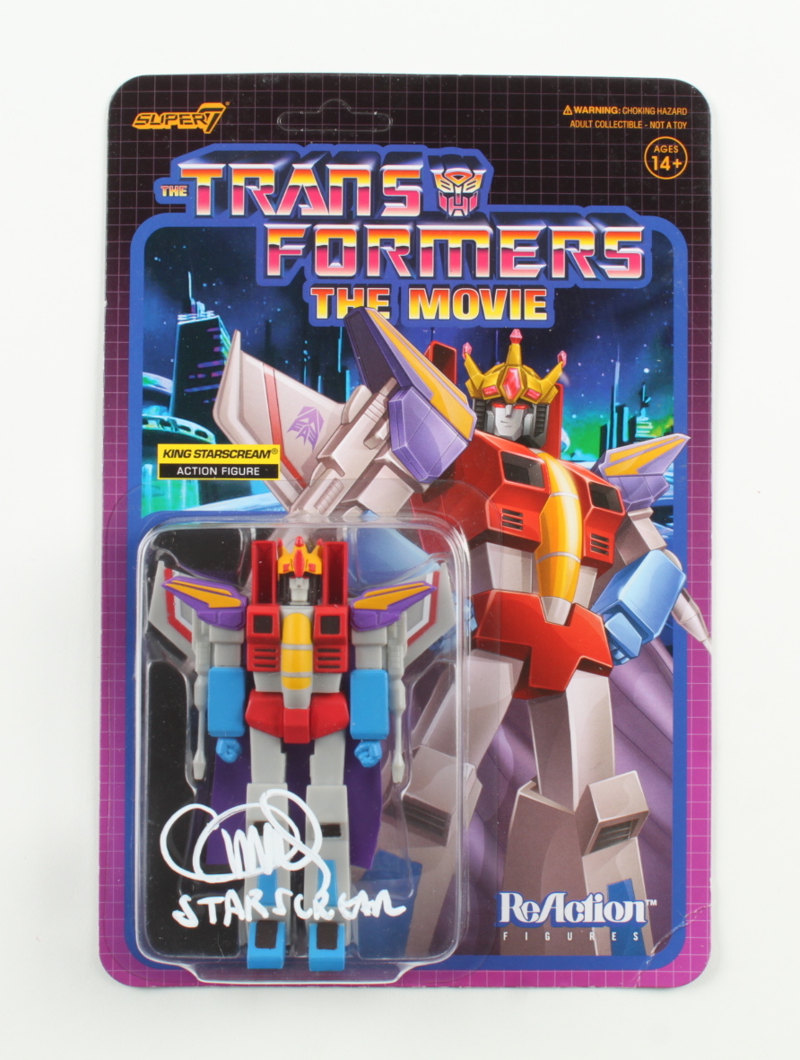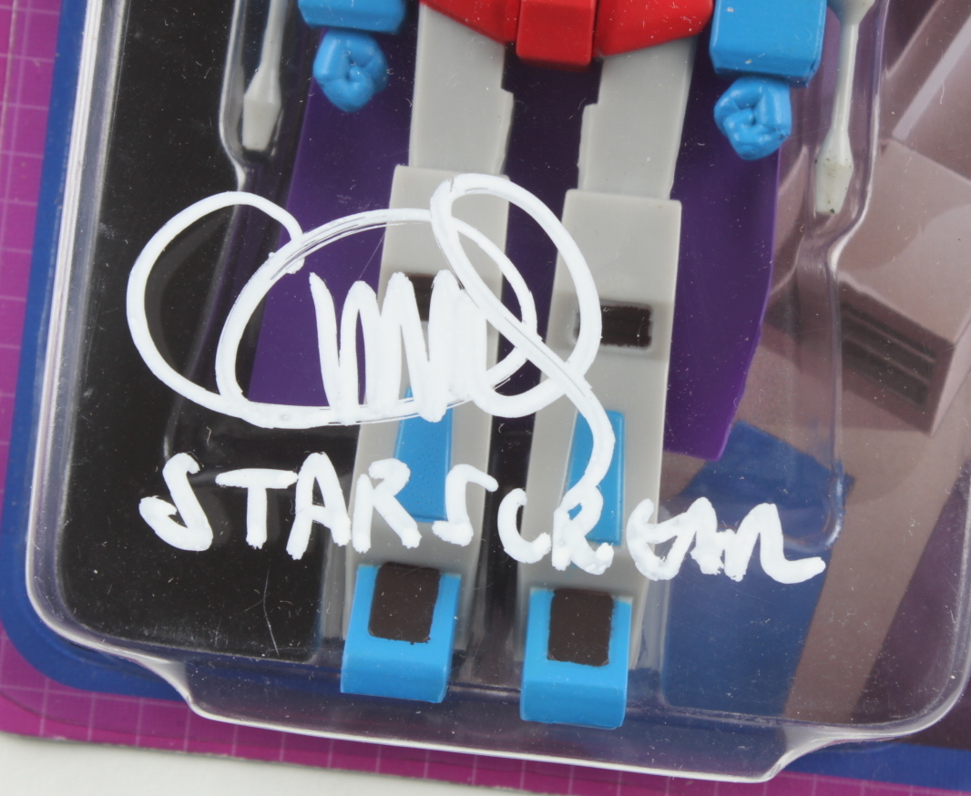 2021 Hasbro "The Transformers: The Movie" Starscream Reaction figure. Hand-signed and inscribed on the original packaging by Charlie Adler (Voice Actor).