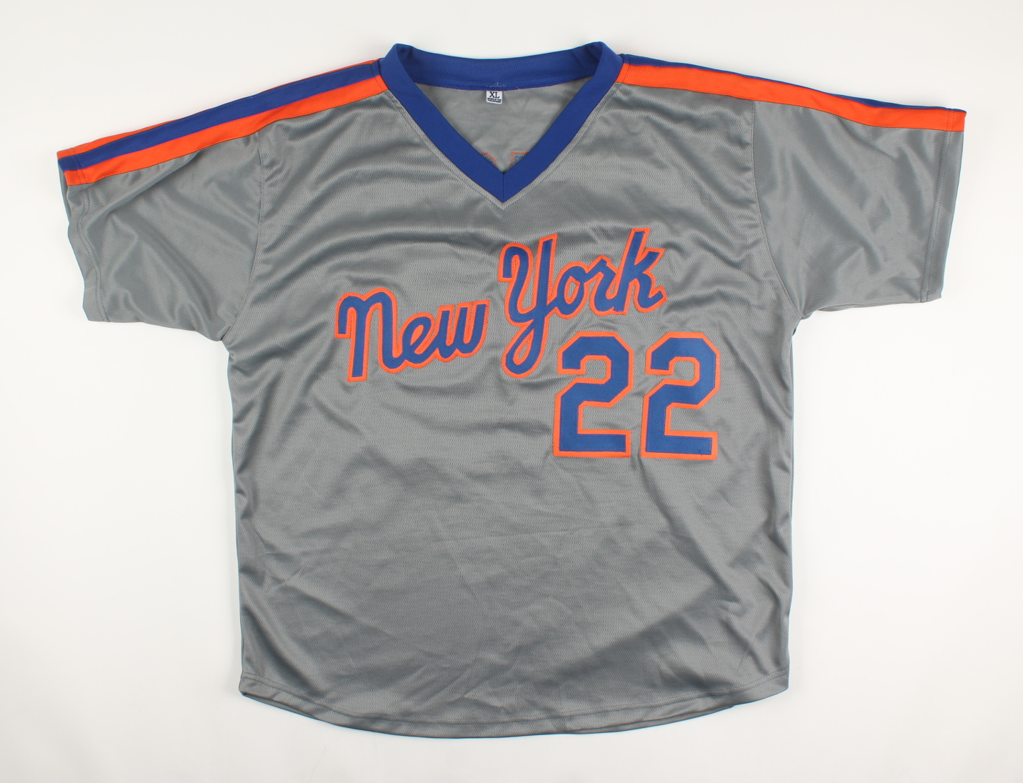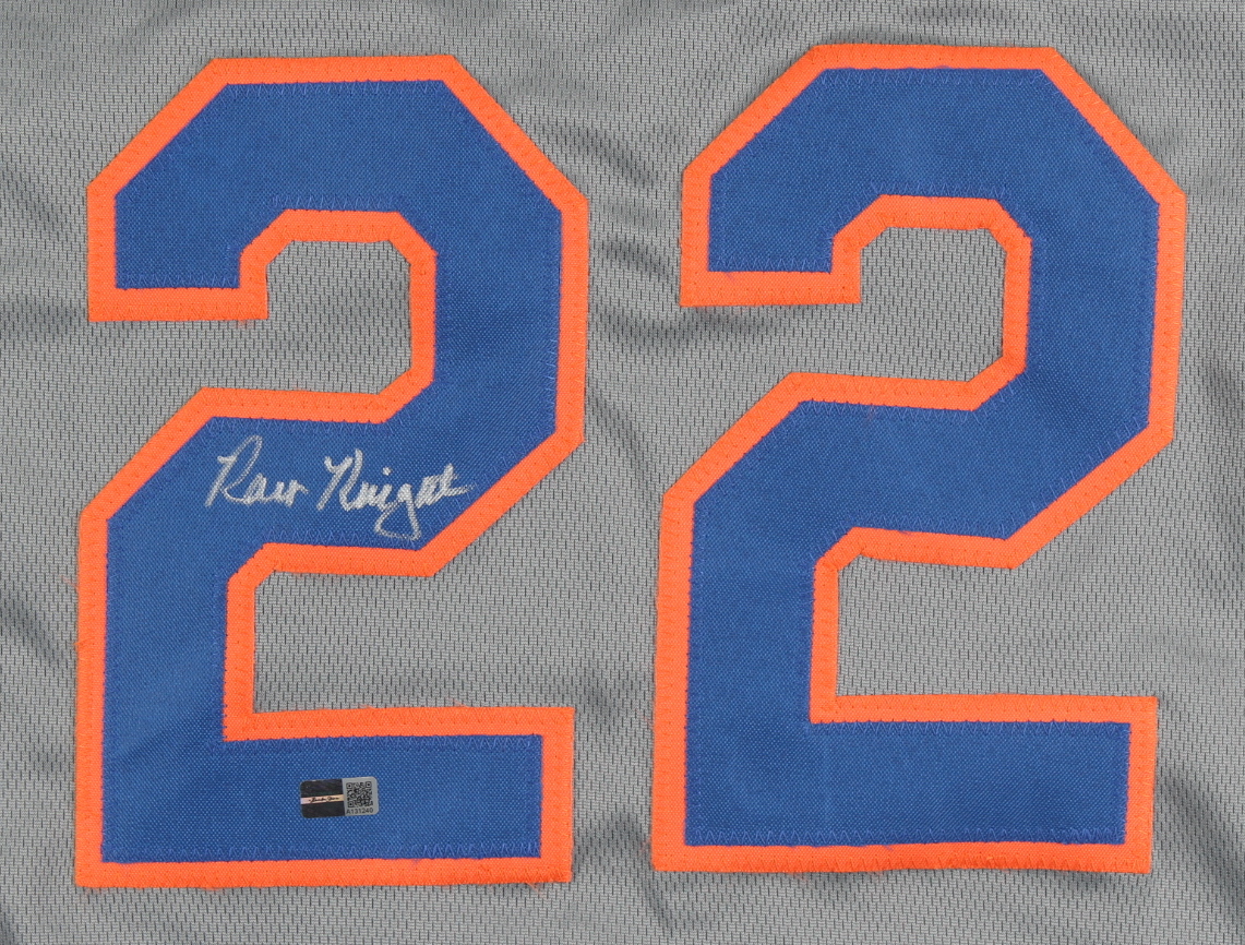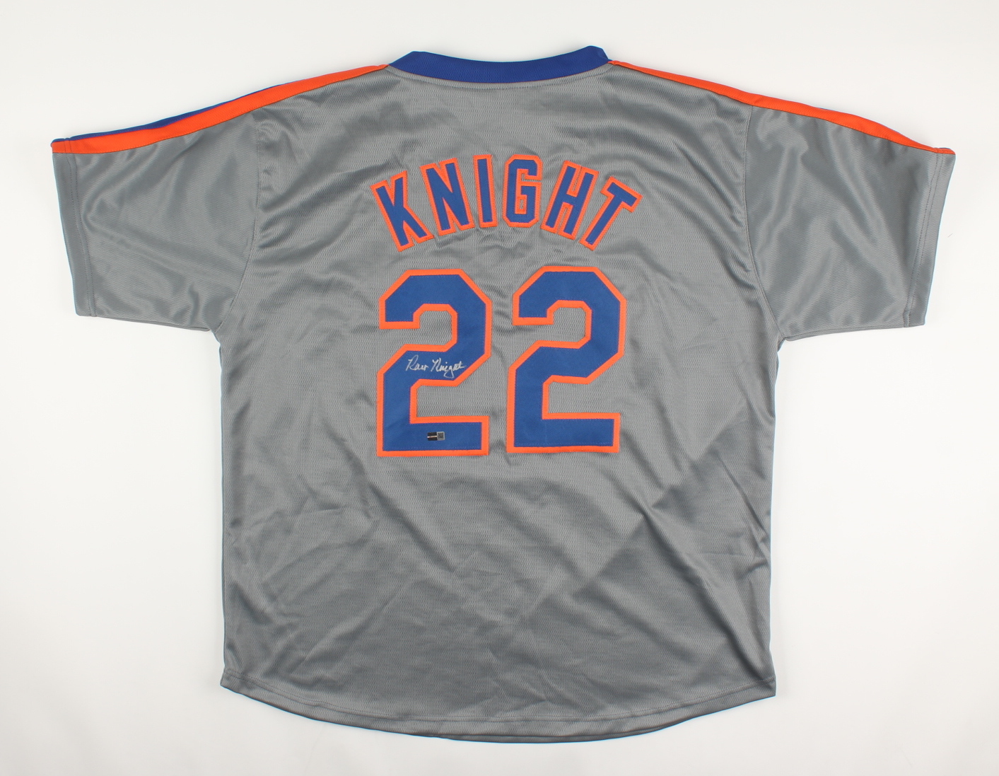Custom on-field style jersey. Everything sewn on, size XL. Hand-signed by Ray Knight.