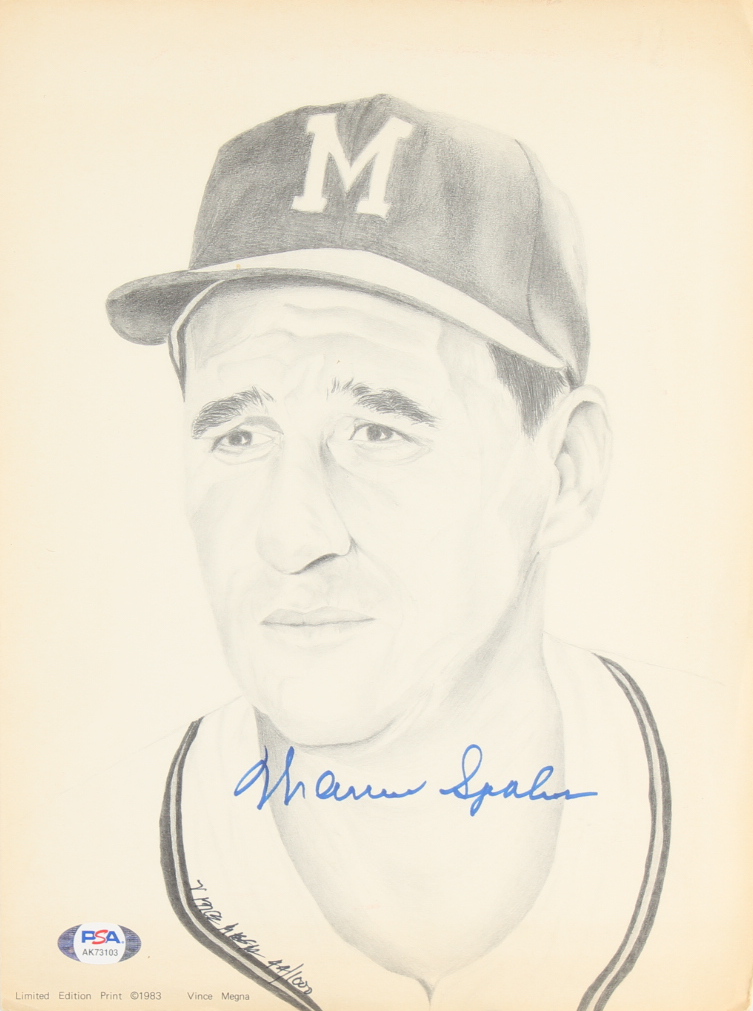 Warren Spahn Signed LE Brewers 9x12 Print (PSA)