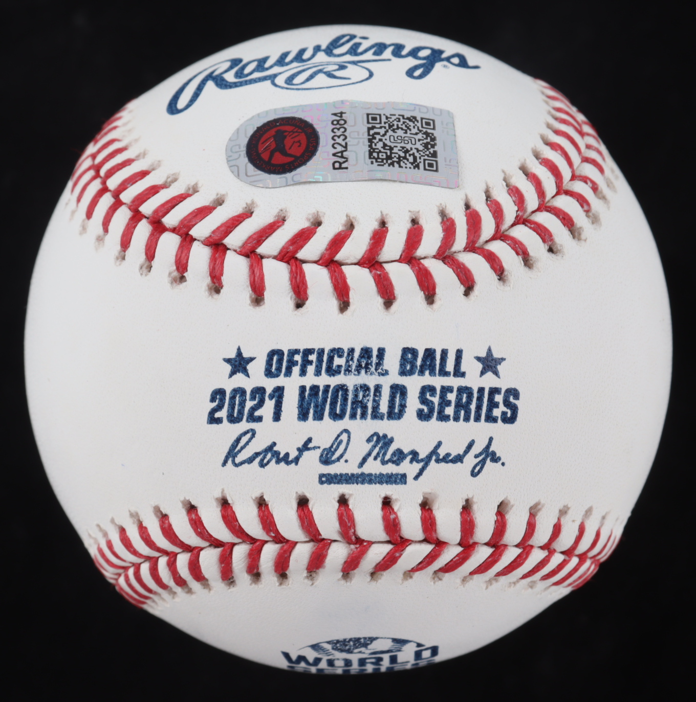Rawlings Official 2021 World Series logo baseball. Hand-signed by Ronald Acuna Jr. (Atlanta Braves).