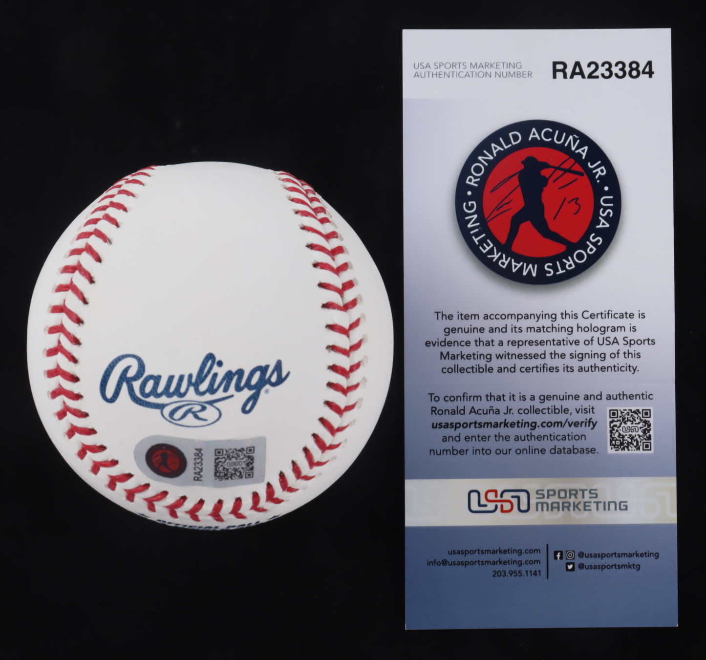 The lot / autograph(s) includes an official USA Sports Marketing Ronald Acuna Jr. hologram and COA for authenticity purposes.