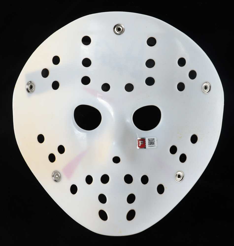 Custom "Friday the 13th" Jason Voorhees full-size replica mask. Hand-signed and inscribed by Ari Lehman (Jason Voorhees, Friday the 13th).