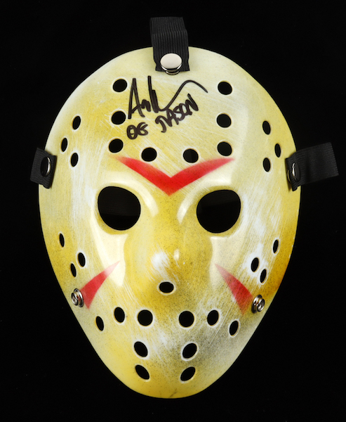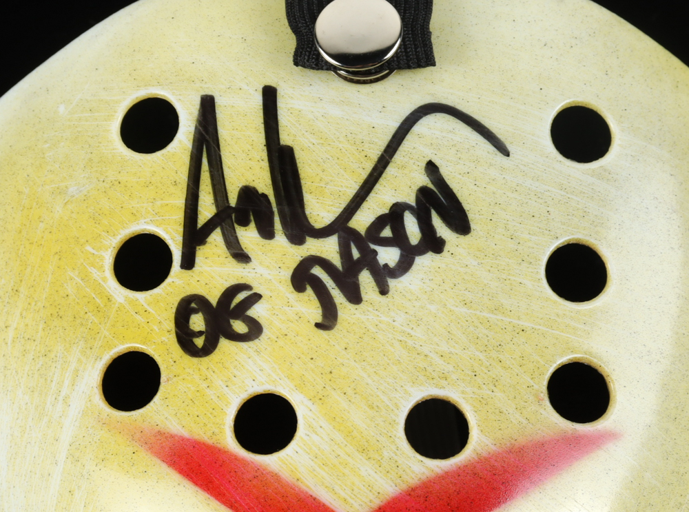 Custom "Friday the 13th" Jason Voorhees full-size replica mask. Hand-signed and inscribed by Ari Lehman (Jason Voorhees, Friday the 13th).