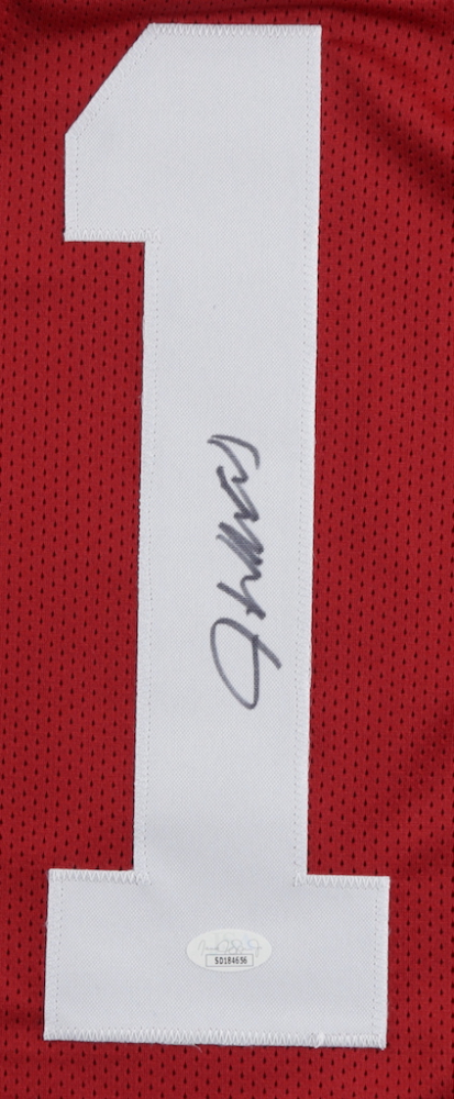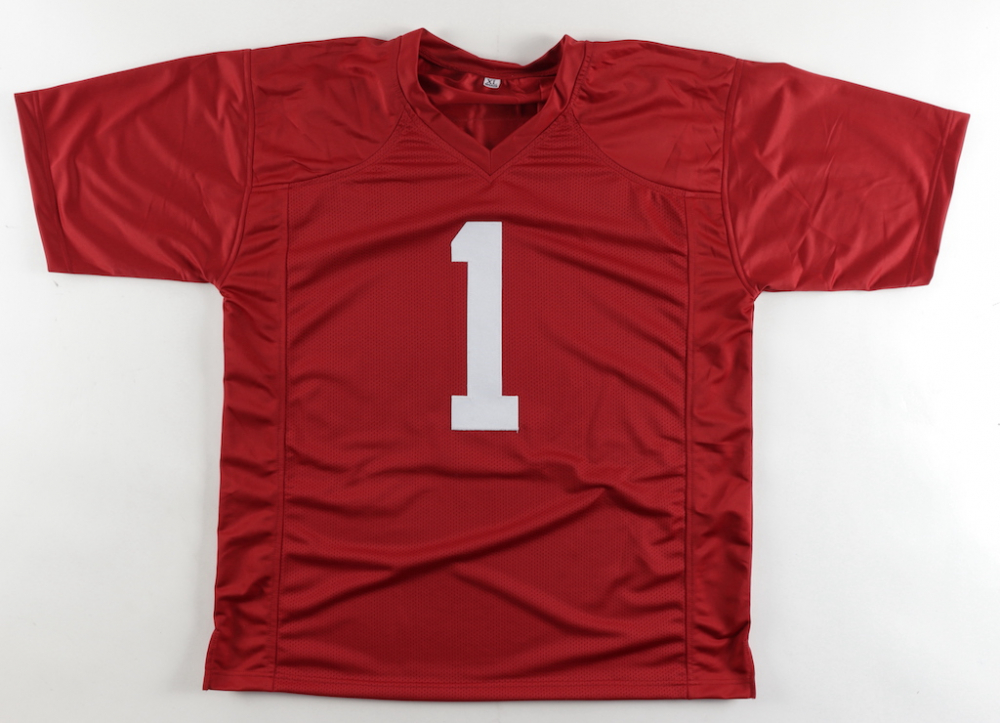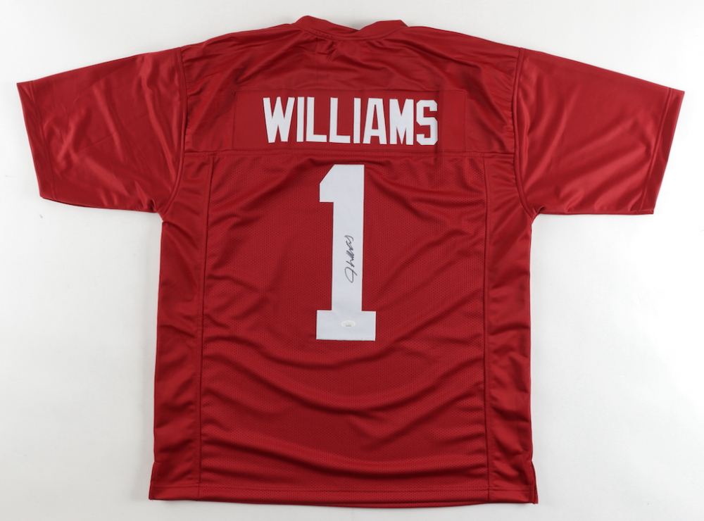 Custom on-field style jersey. Everything is sewn on, size XL. Hand-signed by Jameson Williams.