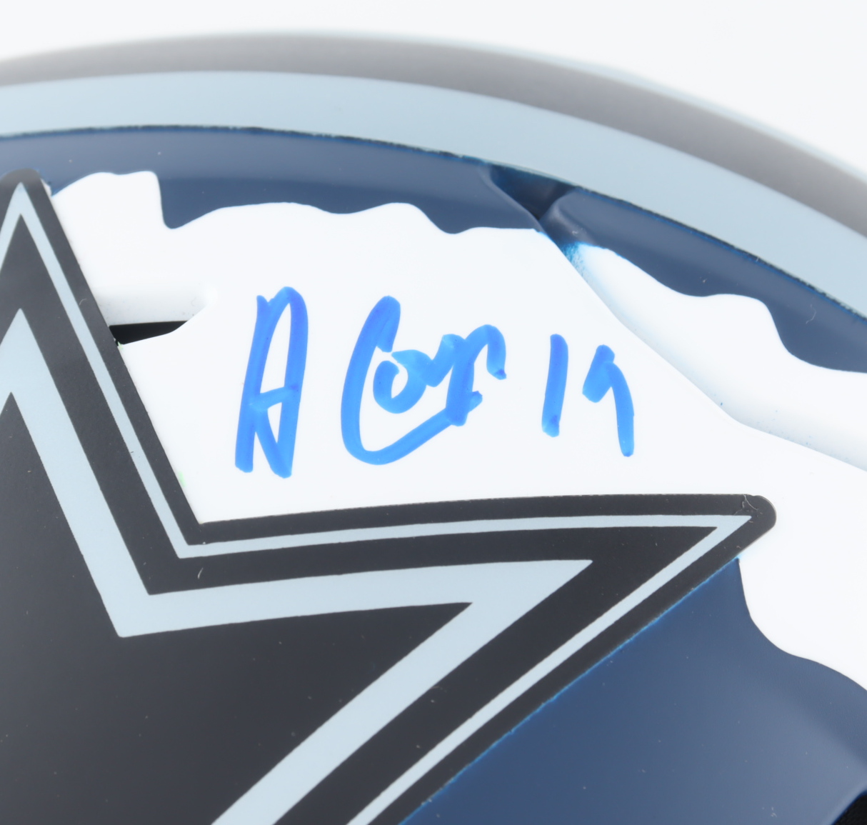 Riddell Dallas Cowboys full-size authentic on-field camo alternate SpeedFlex helmet. Hand-signed by Amari Cooper.