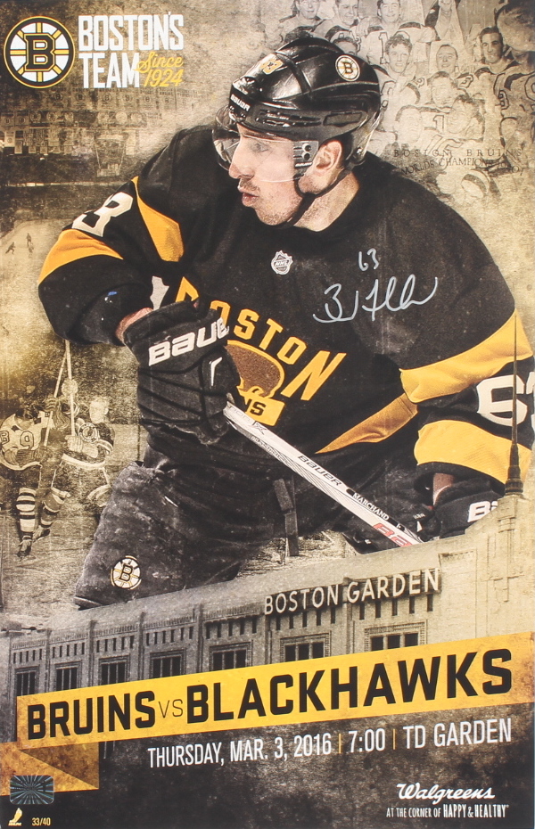 Poster measures 11" x 17" in size and has been hand-signed by Brad Marchand (Boston Bruins).