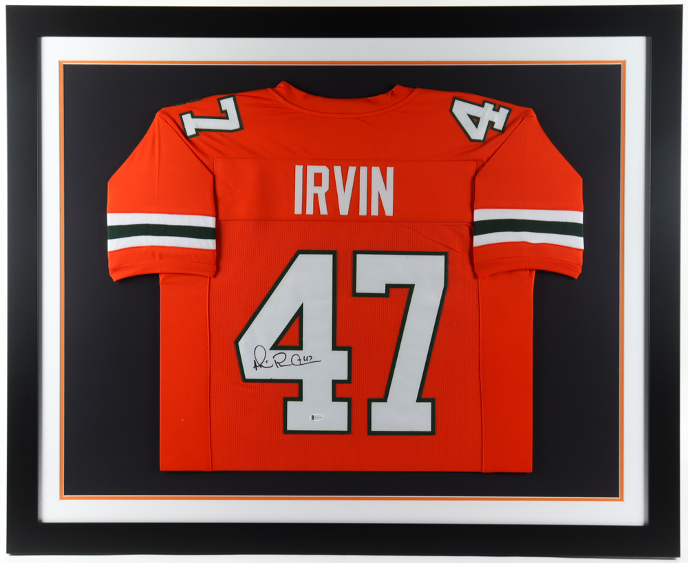 Custom frame measures 35.5" x 43.5" in size and features a jersey that has been hand-signed by Michael Irvin (HOF).