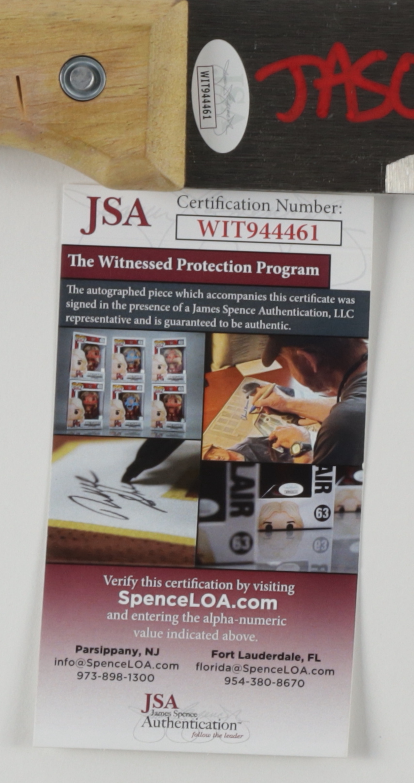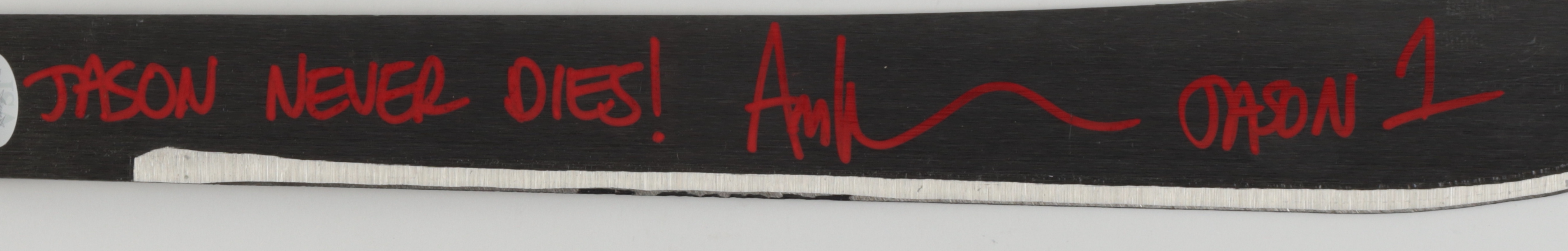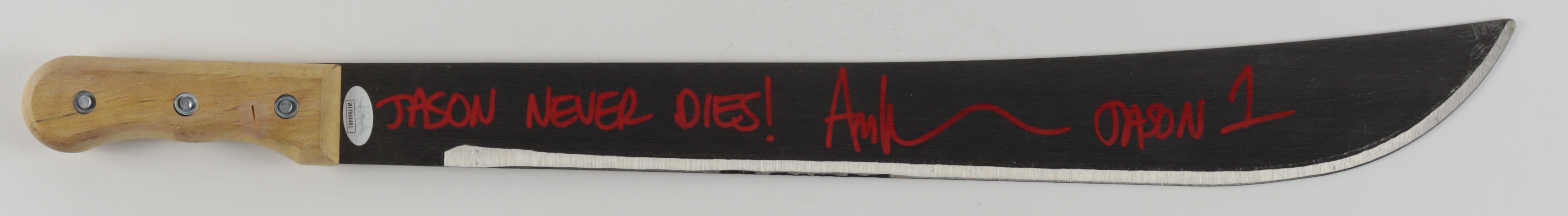 Genuine steel machete measures approximately 25" in length. Hand-signed and inscribed by Ari Lehman (Jason Voorhees).