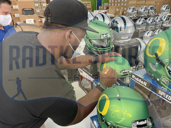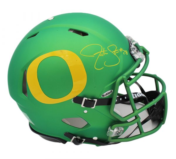 Riddell Oregon Ducks full-size authentic on-field Speed helmet. Hand-signed by Jonathan Stewart.