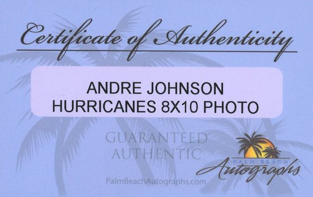Andre Johnson Signed Miami Hurricanes 8x10 Photo (Palm Beach)
