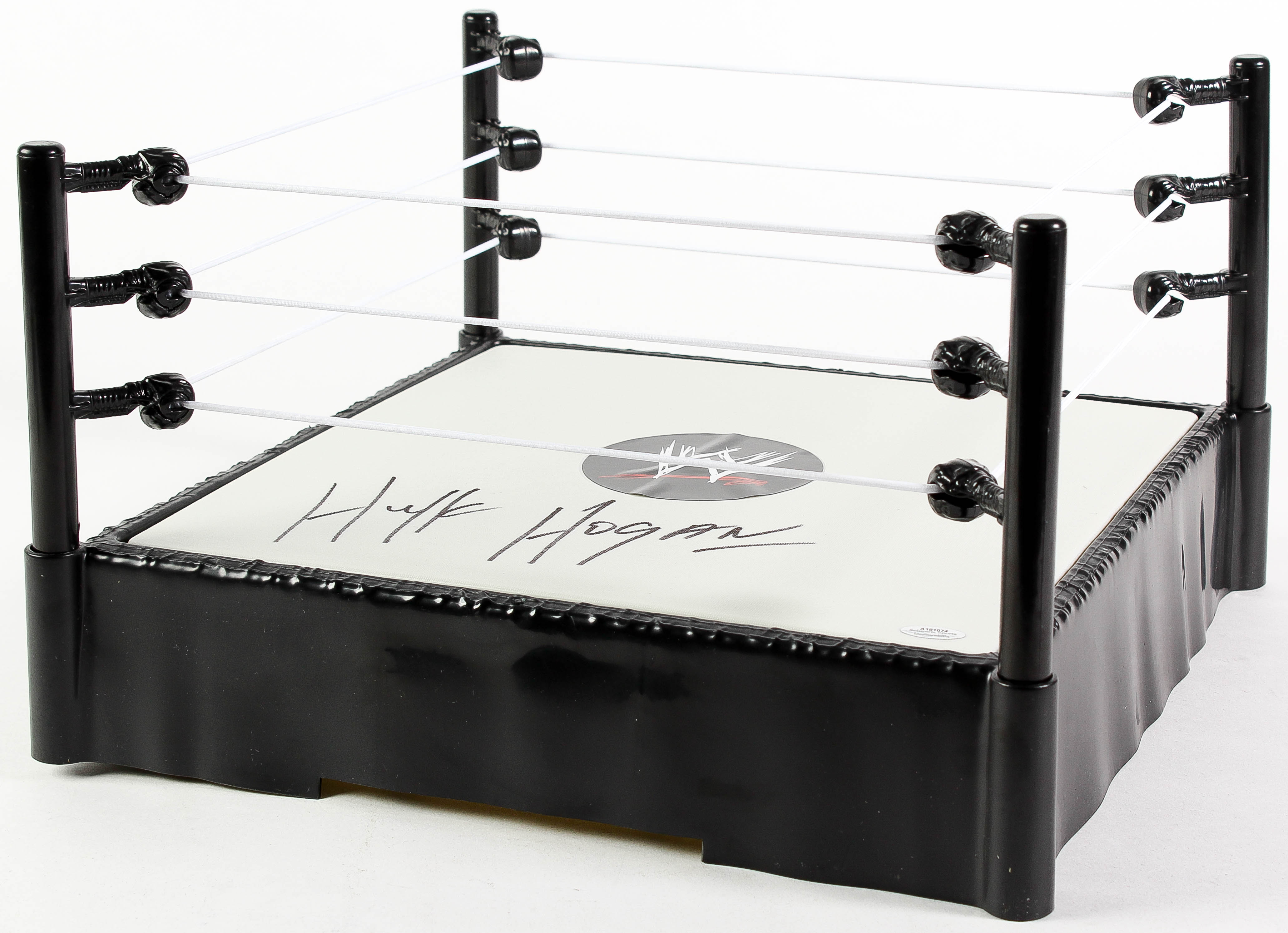 WWE Action Figure Wrestling Ring. Hand-signed in black felt-tip pen by Hulk Hogan.
